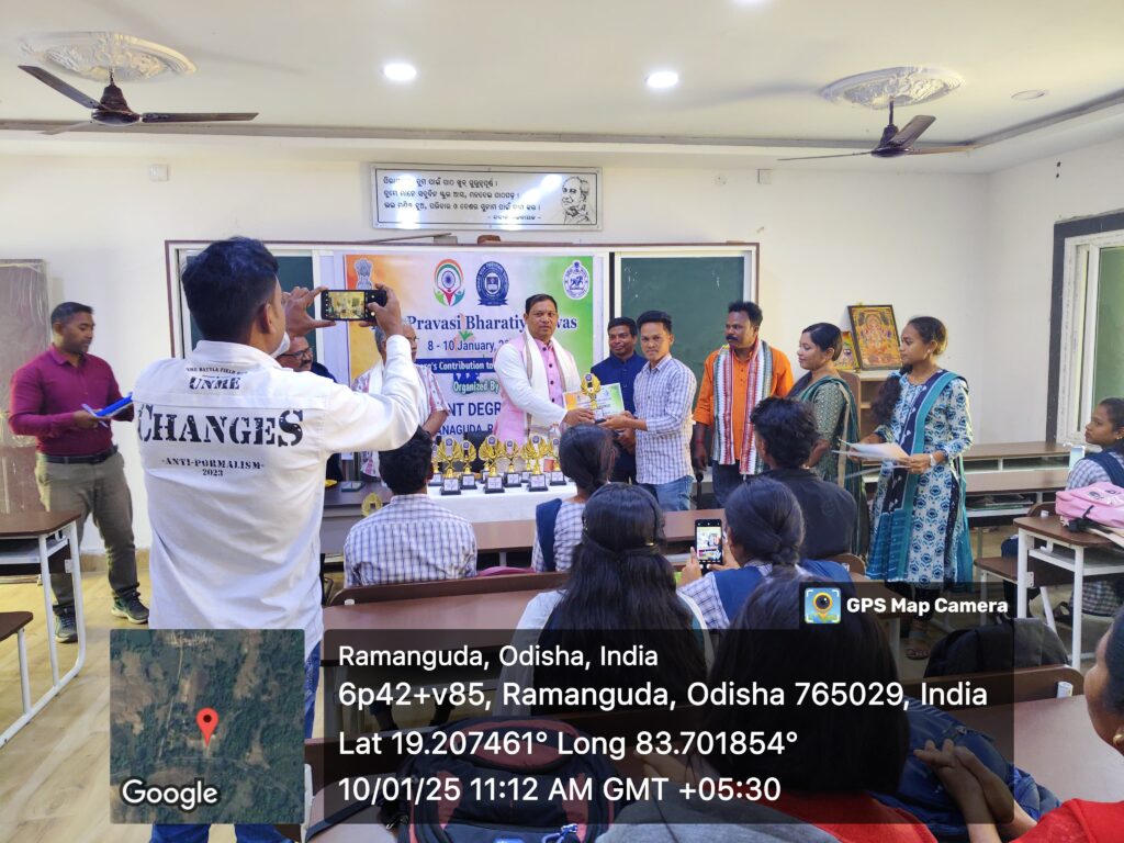 ରାୟଗଡା: ତା :୧୧.୦୧.୨୦୨୫ ରମନଗୁଡ଼ା ସରକାରୀ ସ୍ନାତକ ମହାବିଦ୍ୟାଳୟ ରେ ୧୮ ତମ ପ୍ରବାସୀ ଭାରତୀୟ ଦିବସ ଅଧ୍ୟକ୍ଷ ଡ. କୈଳାସ ମଳିକଙ୍କ ସଭାପତିତ୍ବରେ ଉଦଯାପିତ ହୋଇଯାଇଅଛି। ଏହି ସଭାରେ ରାମନାଗୁଡା ବ୍ଲକ୍ ଅଧ୍ୟକ୍ଷ ଶ୍ରୀଯୁକ୍ତ ରବି ଶଂକର ଗମାଙ୍ଗ ମହୋଦୟ ମୁଖ୍ୟ ଅତିଥି ରୂପେ ଯୋଗଦେଇଥିଲା ବେଳେ ରାମନାଗୁଡା ବ୍ଲକ୍ ଶିକ୍ଷା ଅଧିକାରୀ ଶ୍ରୀଯୁକ୍ତ ସୁଜନ ମଲିକ ସମ୍ମାନୀତ ଅତିଥି ଏଥି ସହ ଅନ୍ୟ ସମ୍ମାନୀତ ଅତିଥି ରୂପେ ପୂର୍ବତନ ଗୁଲୁଣ୍ଠି ସରପଞ୍ଚ ଶ୍ରୀଯୁକ୍ତ ଚିନ୍ନା କଣ୍ଡାଗୋରି ଯୋଗ ଦେଇଥିଲେ। ମହାବିଦ୍ୟାଳୟର ଅଧ୍ୟକ୍ଷ ଡ. ମଲିକ ,(ଓଡିଶା -୨୦୩୬ )ମସିହା ଶହେ ବର୍ଷ ପୂର୍ତ୍ତି ଅବସରରେ ଓଡ଼ିଶାକୁ ବିକଶିତ ରାଷ୍ଟ୍ରରେ ପରିଣତ କରିବାର ଲକ୍ଷ୍ୟ ସଂପର୍କରେ ନିଜ ଅଭିଭାଷଣ ପ୍ରଦାନ କରିଥିଲେ । ମୁଖ୍ୟ ଅତିଥି ଶ୍ରୀଯୁକ୍ତ ଗମାଙ୍ଗ, ଓଡ଼ିଶା ଓ ଭାରତର ସଂସ୍କୃତି ବିଦେଶରେ କିଭଳି ଭାବରେ ପ୍ରଭାବ ବିସ୍ତାର କରୁଛି ଏବଂ ବିକଶିତ ଓଡ଼ିଶା ଓ ବିକଶିତ ଭାରତ ଗଢି ତୋଳିବା ରେ ପ୍ରବାସୀ ଭାରତୀୟ ମାନଙ୍କ ଅବଦାନ ସଂପର୍କରେ ଅଭିଭାଷଣ ପ୍ରଦାନ କରିଥିଲେ । ସମ୍ମାନୀତ ଅତିଥି ରୂପେ ରାମନାଗୁଡା ବ୍ଲକ୍ ଶିକ୍ଷା ଅଧିକାରୀ ଶ୍ରୀଯୁକ୍ତ ସୁଜନ ମଲିକ ଓଡିଶାର କଳା, ସଂସ୍କୃତି, ଐତିହ୍ୟର ସଂସ୍କୃତି ସଂପର୍କରେ ଏବଂ ଗୈ।ତୁମ ବୁଦ୍ଧଙ୍କ ବାଣୀ ସମଗ୍ର ବିଶ୍ଵରେ ଶାନ୍ତି, ମୈତ୍ରୀ ର କିପରି ଏକତା ଭାବ ବହନ କରୁଅଛି ସେ ସଂପର୍କରେ ଅଭିଭାଷଣ ପ୍ରଦାନ କରିଥିଲେ । କୃତୀ ପ୍ରତିଯୋଗୀଙ୍କୁ ମାନପତ୍ର ସହ ଟ୍ରୋଫି ପ୍ରଦାନ କରି ଉତ୍ସାହିତ କରାଯାଇଥିଲା।ଏହି ସବୁ କାର୍ଯ୍ୟକ୍ରମକୁ କାର୍ଯ୍ୟକ୍ରମର ସଂଯୋଜକ ଶ୍ରୀ ବାଦଲ କୁମାର ପରିଡ଼ା ଅଧ୍ୟାପକ ଇତିହାସ ବିଭାଗର ଅଧ୍ୟାପକ, ଇଂରାଜୀ ବିଭାଗର ଅଧ୍ୟାପକ ଶ୍ରୀ ପ୍ରଫୁଲ କୁମାର ଲିମା, ରାଜନୀତି ବିଭାଗର ଅଧ୍ୟାପିକା ସୁଶ୍ରୀ ପ୍ରଜ୍ଞା ପ୍ରିୟଦର୍ଶିନୀ ପଲେଇ ଏବଂ ଶିକ୍ଷା ବିଭାଗର ଅଧ୍ୟାପିକା ସୁଶ୍ରୀ ତନୁଜା ଶବର ସୂଚାରୁରୂପେ ପରିଚାଳନା କରିଥିଲେ। ଶେଷରେ ଶ୍ରୀଯୁକ୍ତ ପ୍ରଫୁଲ୍ଲ କୁମାର ଲିମା ସମସ୍ତଙ୍କୁ ଧନ୍ୟବାଦ ଅର୍ପଣ କରିଥିଲେ ।