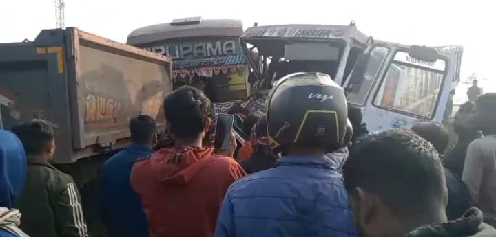 କାମାକ୍ଷାନଗର,୦୪.୦୨.୨୦୨୪ ଥାନା ୧୪୯ ନଂ ଜାତିୟରାଜପଥ ଭେଜିଆ ଶିବ ମନ୍ଦିର ଛକ ନିକଟରେ ଟୁରିଷ୍ଟ ବସ ଧକ୍କା । ହାଇଓ୍ବା ଚାଳକଙ୍କ ସମେତ ୪ଜଣ ଆହତ ହୋଇଛନ୍ତି। ଆଜି ସକାଳ ୮ ଟା ସମୟରେ ଘଟିଛି ଏହି ଦୂର୍ଘଟଣା। ଯାଜପୁର ଜିଲ୍ଲା ବଡଚଣାରୁ ନିରୁପମା ନାମକ ବସଟି ସମ୍ବଲପୂର ଜିଲ୍ଲାର ହିରାକୂଦକୁ ଯାଇ ପିକନିକ ସାରି ଆଜି ଫେରୁଥିଲେ। ଫେରିବା ବାଟରେ ଭେଜିଆ ଛକନିକଟରେ ଟୁରିଷ୍ଟବସଟି ଏକ ଟ୍ରକକୁ ଓଭରଟେକ୍ କରୁଥିବାବେଳେ, ସମ୍ମୁଖରୁ ଆଉ ଏକ ହାଇଓ୍ବା ଟ୍ରକ ସହ ବସଟି ଧକା ହୋଇଥିଲା। ଏପଟେ ଓଭରଟେକ୍ କରୁଥିବା ଟ୍ରକ ସହ ମଧ୍ୟ ବସଟି ପିଟି ହୋଇଯାଇଥିଲା। ଫଳରେ ବସରେ ଥିବା ୪୦ ଜଣ ଯାତ୍ରିଙ୍କଧ୍ୟରୁ ୪ ଜଣ ଆହାତ ହେବାସହ ହାଇଓ୍ବା ଟ୍ରକର ଚାଳକ ମଧ୍ୟ ଆହାତ ହୋଇଥିଲେ। ଘଟଣାସ୍ଥଳରେ ମହାବିରୋଡ ପୋଲିସ ପହଞ୍ଚି ସମସ୍ତ ଯାତ୍ରୀଙ୍କୁ ଉଦ୍ଧାର କରିବା ସହ ହାଇଓ୍ବା ଟ୍ରକର ଡ୍ରାଇଭରକୁ ମଧ୍ୟ ଉଦ୍ଧାର କରିଥିଲେ। ଆହାତ ଟ୍ରକ ଚାଳକ ସମେତ ମୋଟ ୫ ଜଣକୁ ୧୦୮ ଆମ୍ବୁଲାନ୍ସ ଯୋଗେ ତାଳଚେର ସ୍ଥିତ ମଣ୍ଡାପାଳ ମେଡିକାଲକୁ ପଠାଇଥିଲେ। ଅଳ୍ପକେ ବର୍ତିଯାଇଥିବା ଯାତ୍ରୀମାନଙ୍କୁ ଅନ୍ୟଏକ ବସ ଯୋଗେ ବଡଚଣା ପଠାଯାଇଥିବା ଯଣାପଡିଛି।