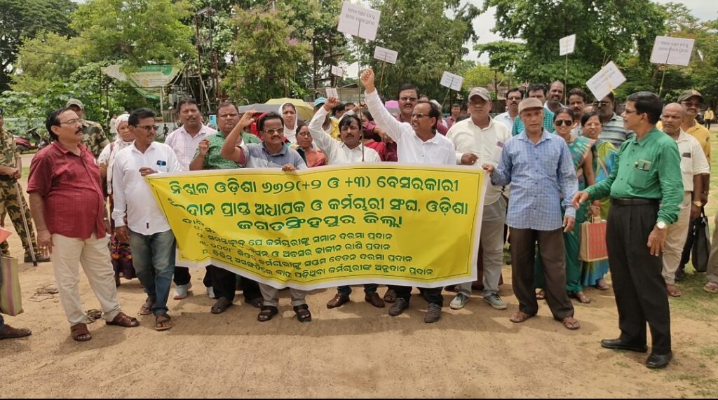 ସମାନ ଗ୍ରେଡ ପେ, ସମାନ କାମକୁ ସମାନ ଦରମା, ୨୦୧୮ ଜିଓ ଅନ୍ତର୍ଭୁକ୍ତ କର୍ମଚାରୀ ସପ୍ତମ ବେତନ କମିଶନ ଅନୁସାରେ ଦରମା, ଅବସର ପରେ ପେନସନ ଲାଗୁ କରିବା ଦାବି ନେଇ ୬୬୨ ବର୍ଗ କଲେଜ ଅଧ୍ୟାପକମାନେ ଆନ୍ଦୋଳନକୁ ଓହ୍ଲାଇଛନ୍ତି । ଆଜି ଜଗତସିଂହପୁର ଜିଲ୍ଲା ୬୬୨ ବର୍ଗ କଲେଜ ଅଧ୍ୟାପକ ଓ ଅଧ୍ୟାପିକା ମାନେ ଜିଲ୍ଲା ସାଧାରଣ ସମ୍ପାଦକ ସୁଧୀର କୁମାର ମହାନ୍ତିଙ୍କ ନେତୃତ୍ୱରେ ସ୍ଥାନୀୟ କଲେଜ ଛକ ଗଣେଶ ମନ୍ଦିର ଠାରୁ ଏକ ଶୋଭାଯାତ୍ରାରେ ଆସି ଜିଲ୍ଲାପାଳଙ୍କ କାର୍ଯ୍ୟାଳୟ ସମ୍ମୁଖରେ ପହଁଞ୍ଚି ବିକ୍ଷୋଭ ପ୍ରଦର୍ଶନ କରିବା ସହିତ ମୁଖ୍ୟମନ୍ତ୍ରୀଙ୍କ ଉଦ୍ଧେଶ୍ୟରେ ଉପଜିଲ୍ଲାପାଳଙ୍କୁ ଦାବିପତ୍ର ପ୍ରଦାନ କରିଛନ୍ତି । ୬୬୨ ବର୍ଗ ରାଜ୍ୟ ସଂଘ ଡ଼ାକରାରେ ଦୀର୍ଘ ୧୫୦ ଦିନ ହେବ ଲୋୟର ପିଏମଜିରେ ଧାରଣା ଦେବା ପରେ ସରକାର କର୍ଣ୍ଣପାତ ନ କରିବାରୁ ଆଜି ଜିଲ୍ଲାପାଳଙ୍କ ଜରିଆରେ ମୁଖ୍ୟମନ୍ତ୍ରୀଙ୍କୁ ଦାବୀ ପତ୍ର ପ୍ରଦାନ କରାଯାଉଛି । ଯଦି ସରକାର ଜୁଲାଇ ୨୦ ତାରିଖ ମଧ୍ୟରେ ଏହାର ସମାଧାନ ନ କରନ୍ତି ତେବେ 20 ତାରିଖ ଠାରୁ ସମସ୍ତ କଲେଜ ବନ୍ଦ କରାଯିବ ବୋଲି ଚେତାବନୀ ଦେଇଛି ସଙ୍ଘ ।