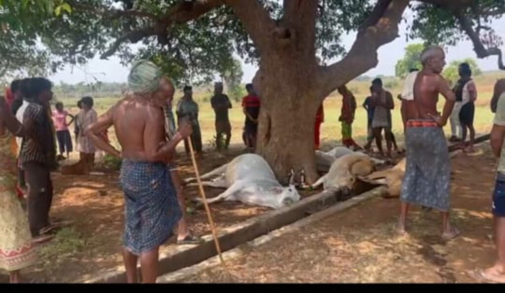 ବଜ୍ରାଘାତରେ ୭ ଗୋରୁ ମୃତ।