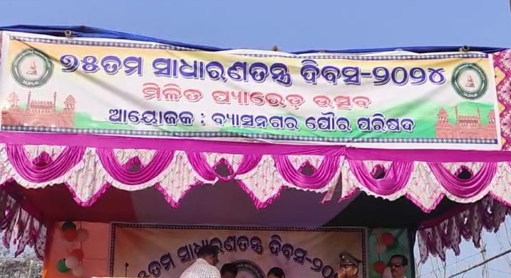 ବ୍ୟାସନଗର ପୌର ପରିଷଦ ପକ୍ଷରୁ ରାଜୀବଗାନ୍ଧୀ ଷ୍ଟାଡିୟମରେ ୭୫ତମ ସାଧାରଣତନ୍ତ୍ର ଦିବସ ପାଳିତ