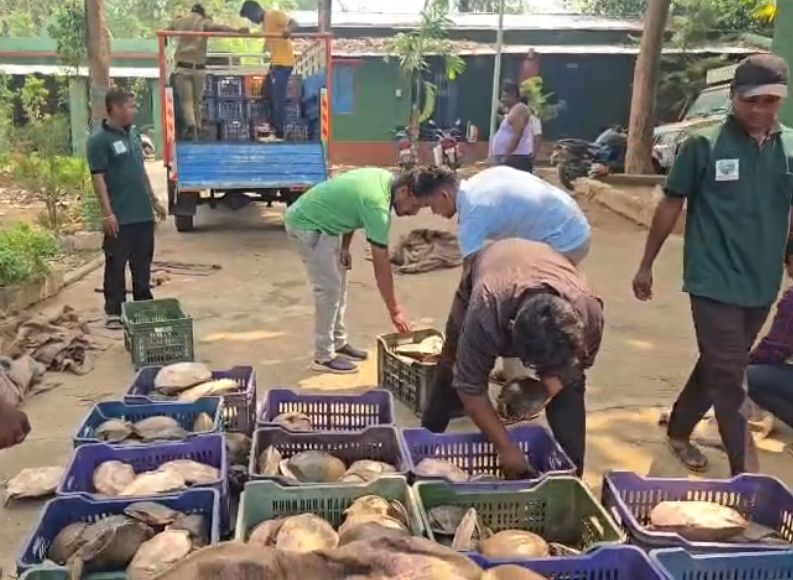 ବଡ଼ ଚଢ଼ାଉ ୭୬୧ କଇଁଛ ଜବତ lମାଲକାନଗିରିରେ ପୁଣି କଇଁଛ ଚାଲାଣ ଉପରେ ବଡ଼ କାର୍ଯ୍ୟାନୁଷ୍ଠାନ…..୭୬୧ଟି ଇଣ୍ଡିଆନ ସଫ୍ଟ ସେଲ୍ କଇଁଛ ଜବତ, ଆନୁମାନିକ ମୂଲ୍ୟ ୧୦ ଲକ୍ଷ…….ମୋଟୁ ରେଞ୍ଜ ଅଞ୍ଚଳରେ ଚଢ଼ାଉ କରି ଜବତ କଲେ ବନ ଅଧିକାରୀ….