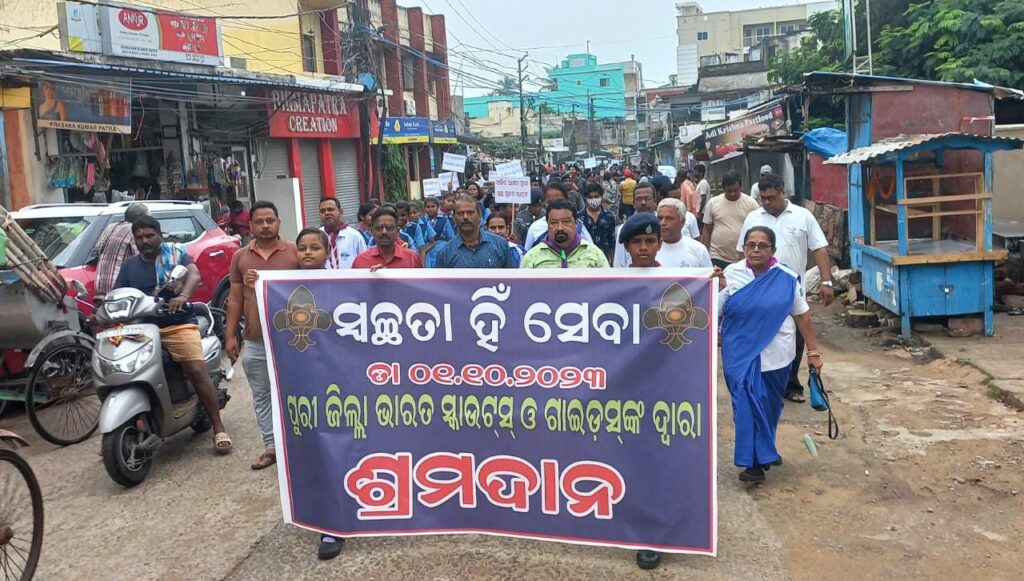 ଆଜି ପୁରୀ ଜିଲ୍ଲା ଭାରତ ସ୍କାଉଟସ୍ ଓ ଗାଇଡସ୍ ତରଫରୁ ” ଏକ ଘଣ୍ଟା ସ୍ବଚ୍ଛତାପାଇଁ ” ଏହି ଆହ୍ୱାନ ଅନୁଯାୟୀ ଏକ ଜନସଚେତନକାରୀ ଶୋଭାଯାତ୍ରା ପୁରୀ, ବିଶ୍ବମ୍ଭର ବିଦ୍ୟାପୀଠ ଠାରୁ ଆରମ୍ଭ ହୋଇଥିଲା । ଏଥିରେ ପୁରୀ ଜିଲ୍ଲାର ବିଭିନ୍ନ ବିଦ୍ୟାଳୟ ମାନଙ୍କରୁ ପ୍ରାୟ ତିନି ଶହରୁ ଉର୍ଦ୍ଧ୍ବ ସ୍କାଉଟସ୍, ଗାଇଡସ୍, ସ୍କାଉଟମାଷ୍ଟର୍ ଓ ଗାଇଡକ୍ଯାପ୍ଟେନ୍ ଯୋଗ ଦେଇଥିଲେ । ଛାତ୍ରଛାତ୍ରୀମାନେ ଶୋଭାଯାତ୍ରାରେ ବିଭିନ୍ନ ପ୍ଲା କାର୍ଡ ଧରି ଓ ସ୍ଲୋଗାନ୍ ଦେଇ ପୁରୀ ସହରସ୍ଥିତ ମୋଚିସାହି ଛକ ପର୍ଯ୍ୟନ୍ତ ଯାଇଥିଲେ ଓ ପ୍ରଥମେ ସମସ୍ତେ ସ୍ବଚ୍ଛତାପାଇଁ ଶପଥଗ୍ରହଣ କରିବା ସହ ସେଠାରେ ସଫେଇ କାର୍ଯ୍ୟ ମଧ୍ୟ କରିଥିଲେ। ଏହି ଶୋଭାଯାତ୍ରାକୁ ଜିଲ୍ଲା ଶିକ୍ଷାଧିକାରୀ ଡଃ ବିଶ୍ୱଜିତ୍ ଘୋଷ୍ ସବୁଜ ପତାକା ହଲାଇ ଉଦ୍ଘାଟନ କରିଥିଲେ ଓ ଜିଲ୍ଲା ସୂଚନା ଓ ଲୋକସମ୍ପର୍କ ଅଧିକାରୀ ସନ୍ତୋଷ କୁମାର ସେଠୀ, ଜିଲ୍ଲା କ୍ରୀଡ଼ାଧିକାରୀ ଚନ୍ଦନ କୁମାର ସାହୁ ଓ ବରିଷ୍ଠ ସାମ୍ବାଦିକ ଶଙ୍କର ବେହେରା ପ୍ରଭୃତି ଉପସ୍ଥିତ ରହି ଛାତ୍ରଛାତ୍ରୀମାନଙ୍କୁ ସ୍ବଛତା’ର ଶପଥ ପାଠ କରାଇଥିଲେ । ସମସ୍ତ କାର୍ଯ୍ୟକ୍ରମର ଆୟୋଜନ ଜିଲ୍ଲା ବିଦ୍ୟାଳୟ ଶାରୀରିକ କ୍ରୀଡାଧିକାରୀ ମହେନ୍ଦ୍ର କୁମାର ବିଶ୍ଵାଳ ଓ ଜୁନିଅର ଆସିଷ୍ଟାଣ୍ଟ୍ ପ୍ରଭାତ କୁମାର ମିଶ୍ରଙ୍କ ଦ୍ବାରା ସମ୍ପନ୍ନ ହୋଇଥିଲା । ଡି. ଓ .ସି ( ସ୍କାଉଟସ୍) ଦେବାଶିଷ ମିଶ୍ର, ଡି ଓ ସି( ଗାଇଡସ୍) ମୀନାକ୍ଷୀ ମିଶ୍ର ତଥା ରଞ୍ଜନ କୁମାର ଷଡ଼ଙ୍ଗୀ, ବିଦ୍ୟାଧର ମିଶ୍ର , ଅରୁଣ କୁମାର ଭଟ୍ଟାଚାର୍ଯ୍ୟ, ଲଲାଟେନ୍ଦୁ ସ୍ବାଇଁ, ସସ୍ମିତା ରାଉତରାୟ ପ୍ରଭୃତି ସ୍କାଉଟମାଷ୍ଟର୍ ଓ ଗାଇଡକ୍ଯାପ୍ଟେନ୍ ଓ ପ୍ରଧାନ ଶିକ୍ଷକ ଅଶୋକ କୁମାର ସେଠୀ ଶୋଭାଯାତ୍ରା ପରିଚାଳନା କରିଥିଲେ ।