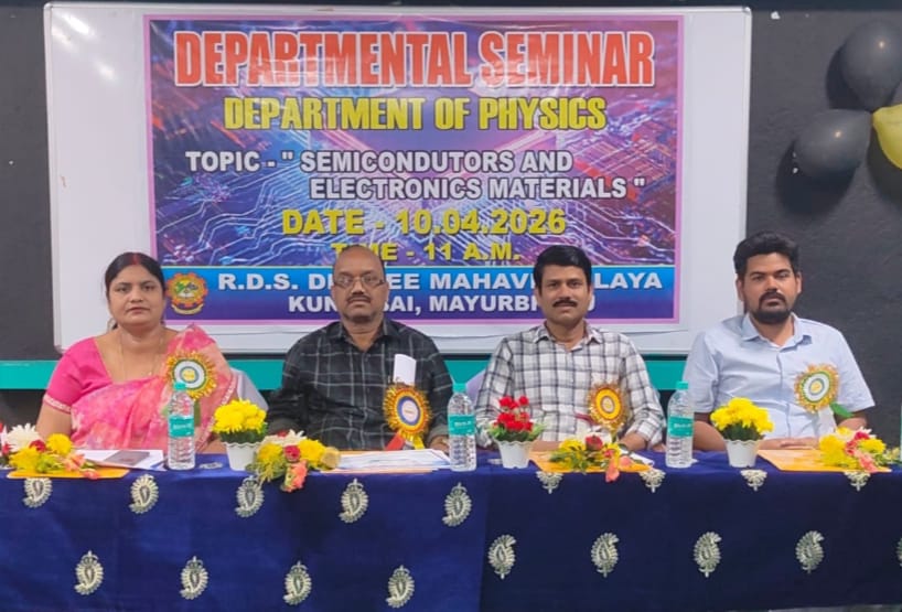 ଉଦଳା, କୁଣ୍ଡାବାଇ ସ୍ଥିତ ଆର୍. ଡି. ଏସ୍. ଡିଗ୍ରୀ ମହାବିଦ୍ୟାଳୟରେ ପଦାର୍ଥ ବିଜ୍ଞାନ ବିଭାଗ ତରଫରୁ “ସେମିକଣ୍ଡକ୍ଟର ଆଣ୍ଡ ଇଲେକ୍ଟ୍ରୋନିକ୍ସ ମାଟେରିଆଲସ୍” ଶୀର୍ଷକରେ ଏକ ଆଲୋଚନାଚକ୍ର ଅନୁଷ୍ଠିତ ହୋଇଯାଇଛି । ମହାବିଦ୍ୟାଳୟର ଅଧ୍ୟକ୍ଷ ଡ. ପ୍ରଦୀପ କୁମାର ଗିରିଙ୍କ ମାର୍ଗଦର୍ଶନରେ ଅନୁଷ୍ଠିତ ଏହି ଆଲୋଚନା ଚକ୍ରରେ ମୁଖ୍ୟ ଅତିଥି ତଥା ବିଷୟ ବିଶାରଦ ଭାବେ ଖୁଣ୍ଟା ଡିଗ୍ରୀ ମହାବିଦ୍ୟାଳୟ ପଦାର୍ଥ ବିଜ୍ଞାନ ବିଭାଗର ଅଧ୍ୟାପକ ଅଶ୍ୱିନୀ ରଞ୍ଜନ ମିଶ୍ର ଯୋଗଦେଇ ଆଲୋଚନାର ବିଷୟବସ୍ତୁର ଆବଶ୍ୟକତା ଠାରୁ ଆରମ୍ଭ କରି ତାର ବିଭିନ୍ନ ଦିଗଗୁଡିକ ପୁଙ୍ଖାନୁପୁଙ୍ଖ ଭାବରେ ଆଲୋଚନା କରି ଛାତ୍ର ଛାତ୍ରୀ ମାନଙ୍କୁ ବହୁ ଉପାଦେୟ ତଥ୍ୟ ଅବଗତ କରିଥିଲେ । ଉକ୍ତ କାର୍ଯ୍ୟକ୍ରମରେ ମହାବିଦ୍ୟାଳୟର ପ୍ରାଶାସନିକ ଅଧିକାରୀ ରାଜନୀତି ବିଜ୍ଞାନ ବିଭାଗର ମୁଖ୍ୟ ଅଧ୍ୟାପକ ଡ. ସୁଧାଂଶୁ ଶେଖର ଦାସମଙ୍ଗରାଜ ସଭାପତିତ୍ବ କରିଥିଲେ ।ଏହି କାର୍ଯ୍ୟକ୍ରମରେ ମହାବିଦ୍ୟାଳୟର ପଦାର୍ଥ ବିଜ୍ଞାନ ବିଭାଗର ମୁଖ୍ୟ ସସ୍ମିତା ସାହୁ ଆଲୋଚ୍ୟ ବିଷୟ ବସ୍ତୁ ଉପରେ ବିଷୟରେ ଆଲୋକପାତ କରିଥିବାବେଳେ ବିଭାଗୀୟ ଅଧ୍ୟାପକ ଜ୍ୟୋତିପ୍ରକାଶ ପଣ୍ଡା ସ୍ଵାଗତ ଭାଷଣ ପ୍ରଦାନ କରିଥିଲେ ଏବଂ କାର୍ଯ୍ୟକ୍ରମ ଶେଷରେ ବିଭାଗର ଡେମନଷ୍ଟେଟର ବିଜୟ କୁମାର ପଣ୍ଡା ସମସ୍ତଙ୍କୁ ଧନ୍ୟବାଦ ପ୍ରଦାନ କରିଥିଲେ । ଉକ୍ତ ଆଲୋଚନା ଚକ୍ର ରେ ବିଭାଗର ଛାତ୍ର, ଛାତ୍ରୀ ମାନଙ୍କ ମଧ୍ୟରେ ଜୁବଲି ଯୁବିତା ନାଏକ, ଲଲିତ ଭଞ୍ଜବାବୁ, ଶୁଭଲକ୍ଷ୍ମୀ ସିଂ, ହେମାମାଳିନୀ ସିଂ, ସତ୍ୟପ୍ରକାଶ ବେହେରା, ବିଶ୍ୱଜିତ୍ ଦାଶ ପ୍ରମୁଖ ନିଜ ନିଜର ସନ୍ଦର୍ଭ ପାଠ କରିଥିଲେ । ଏହି କାର୍ଯ୍ୟକ୍ରମରେ ବିଭାଗର ସମସ୍ତ୍ ଛାତ୍ର ଛାତ୍ରୀ ଯୋଗଦେଇ ଆଲୋଚନା ଚକ୍ରକୁ ସଫଳ କରିଥିଲେ ।