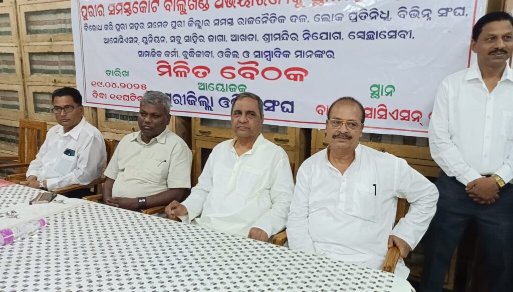 ପୁରୀର ସମସ୍ତ କୋର୍ଟ ବାଲୁଖଣ୍ଡ ଅଭୟାରଣ୍ୟକୁ ସ୍ଥାନାନ୍ତରଣ ପ୍ରକ୍ରିୟା ବିରୁଦ୍ଧରେ ପୁରୀ ବାର ଆସୋସିଏସନ୍ ର ଗୁରୁତ୍ବପୁର୍ଣ ବୈଠକ ଆଜି ଅନୁଷ୍ଠିତ ହୋଇଛି।ବାର ଆସୋସିଏସନ୍ ସମ୍ମିଳନୀ କକ୍ଷରେ ଅନୁଷ୍ଠିତ lମିଳିତ ବୈଠକରେ ସମସ୍ତ ରାଜନୈତିକ ଦଳ,ଲୋକ ପ୍ରତିନିଧି,ବିଭିନ୍ନ ସଂଘ,ଯାଗା,ଆଖଡ଼ା,ଶ୍ରୀମନ୍ଦିର ସେବାୟତ ନିଯୋଗ ,ସାମାଜିକ କର୍ମୀ ଯୋଗ ଦେଇଥିଲେ।