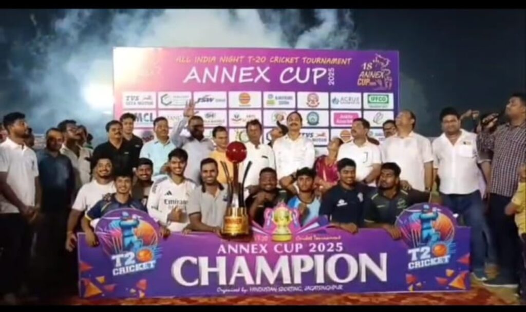 Date-12/05/25 ଜଗତସିଂହପୁର ସ୍ୱାମୀ ବିବେକାନନ୍ଦ ସ୍ୱୟଂ ଶାସିତ ମହାବିଦ୍ୟାଳୟ ଖେଳ ପଡ଼ିଆ ରେ ହିନ୍ଦୁସ୍ଥାନ ସ୍ପୋଟିଂ ଆନୁକୂଲ୍ୟରେ ଅନୁଷ୍ଠିତ ହେଉଥିବା ୧୮ ତମ ସର୍ବ ଭାରତୀୟ କ୍ରିକେଟ ଟୁର୍ନାମେଣ୍ଟ ଆନେକ୍ସ କପ ର ଫାଇନାଲ ରେ ବିଜୟ ହାସଲ କରିଛି କଟକ ର ରାଇଜିଂ ଷ୍ଟୁଡେଣ୍ଟ୍ କ୍ଲବ। ପ୍ରଥମେ ଟସ୍ ରେ ଜିତି ରାଇଜିଂ ଷ୍ଟୁଡେଣ୍ଟ୍ କ୍ଲବ ବୋଲିଂର ନିଷ୍ପତ୍ତି ନେଇଥିଲା । ସ୍ପୋଟିଂ ୟୁନିଅନ କ୍ରିକେଟ କ୍ଲବ ଝାଡ଼ଖଣ୍ଡ ନିର୍ଦ୍ଧାରିତ ୨୦ ଓଭର ରେ ୮ ଉଇକେଟ ହରାଇ ୧୬୪ ରନ ସଂଗ୍ରହ କରିଥିଲା l ଏହାର ଜବାବ ରେ ୧୭.୪ ଓଭର ରେ ଏକ ସଂଘର୍ଷ ମୟ ମ୍ୟାଚ ରେ ୪ ୱିକେଟ୍ ହରାଇ ୧୭୦ ରନ ସଂଗ୍ରହ କରି କଟକ ରାଇଜିଂ ଷ୍ଟୁଡେଣ୍ଟ୍ କ୍ଲବ ବିଜୟ ହାସଲ କରିଥିଲା। ଏହି ଖେଳ ର ଶ୍ରେଷ୍ଠ ଖେଳାଳି ରାଇଜିଂ ଷ୍ଟୁଡେଣ୍ଟ୍ କ୍ଲବ ର ବିପ୍ଲବ ସାମନ୍ତରାୟ ଙ୍କୁ ମ୍ୟାନ୍ ଅଫ ଦି ମ୍ୟାଚ୍ ରୂପେ ଘୋଷଣା କରାଯାଇଥିଲା । ପରେ ପୁରସ୍କାର ବିତରଣୀ ଉତ୍ସବ ରେ ମୁଖ୍ୟ ଅତିଥି ଭାବେ ଓଡିଶା ର ଶିଳ୍ପ ଓ ଦକ୍ଷତା ବିକାଶ ମନ୍ତ୍ରୀ ସମ୍ପଦ ଚରଣ ସ୍ୱାଇଁ, ଜଗତସିଂହପୁର ବିଧାୟକ ଅମରେନ୍ଦ୍ର ଦାସ, ଜିଲ୍ଲାପାଳ ଜେ ସୋନାଲ, ଜିଲ୍ଲା ପରିଷଦ ଅଧ୍ୟକ୍ଷ ମନୋଜ ଭୋଇ, ଜଗତସିଂହପୁର ବିଡିଓ ଆଶୁତୋଷ ମିଶ୍ର, ହିନ୍ଦୁସ୍ଥାନ ସ୍ପୋଟିଂ ର ସଭାପତି ସମୀର ଲେଙ୍କା ପ୍ରମୁଖ ଯୋଗ ଦେଇ ଚାମ୍ପିୟାନ ଟିମ କଟକ ର ରାଇଜିଂ ସ୍ଟୁ ଡେଣ୍ଟ ଦଳ କୁ ଟ୍ରଫି ସହ ୧ ଲକ୍ଷ ପୁରସ୍କାର ରାଶି ପ୍ରଦାନ କରିଥିଲେ ଏବଂ ରନର୍ସ ଅପ୍ ଟିମ୍ ଝାରଖଣ୍ଡ ର ସ୍ପୋଟିଂ ୟୁନିୟନ କୁ ୭୦ ହଜାର ଟଙ୍କା ପୁରସ୍କାର ରାଶି ଏବଂ ସୁନ୍ଦର ଟ୍ରଫି ପ୍ରଦାନ କରିଥିଲେ।