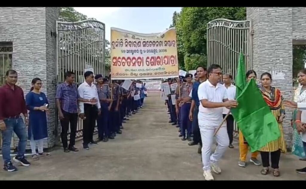 Date – 31/10/25 – ଜଗତସିଂହପୁର ଜିଲ୍ଲା ଦୁର୍ନୀତି ନିବାରଣ ସପ୍ତାହ ପାଳନ ଅବସରରେ ଭିଜିଲାନ୍ସ ବିଭାଗ ପକ୍ଷରୁ ସ୍ଥାନୀୟ ଶ୍ରୀକୃଷ୍ଣ ଏକାଡେମୀ ଠାରୁ ଜିଲ୍ଲାପାଳଙ୍କ କାର୍ଯ୍ୟାଳୟ ପର୍ଯ୍ୟନ୍ତ ଏକ ସଚେତନତା ରାଲି ଅନୁଷ୍ଠିତ ହୋଇଯାଇଛି । ଏହି ଅବସରରେ ଆୟୋଜିତ କାର୍ଯ୍ୟକ୍ରମ ରେ ଜିଲ୍ଲା ଅତିରିକ୍ତ ଜିଲ୍ଲାପାଳ ଜ୍ୟୋତି ପ୍ରକାଶ ରାୟ, ଭିଜିଲାନ୍ସ ଅଧିକାରୀ ଅନୁପମା ସାହୁ , ଜିଲ୍ଲା ପ୍ରଶାସନ ର ବରିଷ୍ଠ ଅଧିକାରୀ ଓ ଦୁର୍ନୀତି ନିବାରଣ ବିଭାଗ ର ଅଧିକାରୀ ଓ କର୍ମଚାରୀ ମାନଙ୍କ ସହ ବିଭିନ୍ନ ସ୍କୁଲ କଲେଜର ଛାତ୍ରଛାତ୍ରୀ ମାନେ ଯୋଗ ଦେଇ ଦୁର୍ନୀତି ନିବାରଣ ସମ୍ପର୍କରେ ଲୋକମାନଙ୍କୁ ସଚେତନ କରିଥିଲେ । ଏହି ରାଲି ସହର ପରିକ୍ରମା କରିବା ସହିତ ଜିଲ୍ଲାପାଳଙ୍କ କାର୍ଯ୍ୟାଳୟ ସମ୍ମୁଖରେ ପହଁଚି ଥିଲା । ଏହାର୍ ଲକ୍ଷ ଲୋକମାନେ ସଚେତନ ହେବ ସହିତ ଦୁର୍ନୀତି ରୋକାଯାଇ ପାରିବ ବୋଲି ଭିଜିଲାନ୍ସ ଅଧିକାରୀ କହିଛନ୍ତି l