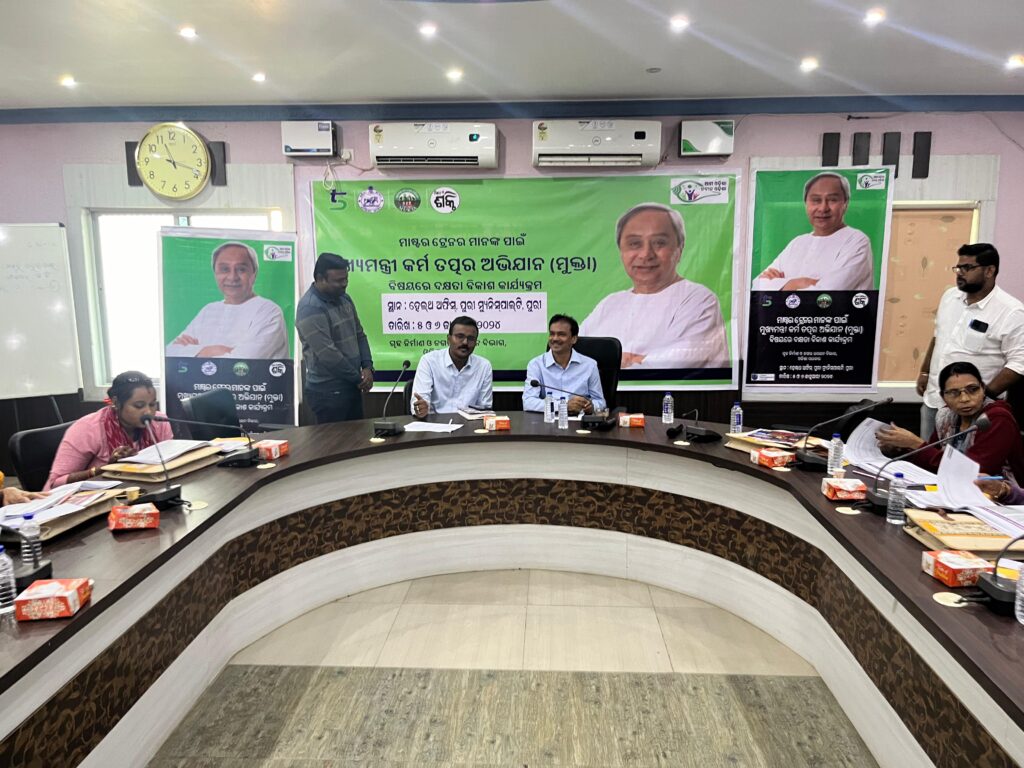 ରାଜ୍ୟ ସହରାଞ୍ଚଳ ଉନ୍ନୟନ ସଂସ୍ଥା (ସୁଡା) ମୁକ୍ତା ଯୋଜନାର ରାଜ୍ୟସ୍ତରୀୟ ନୋଡାଲ ଏଜେନ୍ସି ଭାବରେ ଅନୁମୋଦିତ ହୋଇ ଅଛି। ରାଜ୍ୟ ସରକାର ଏହି କାର୍ଯ୍ୟଯୋଜନାର ତୃଣମୂଳ ସ୍ତରରେ ସଫଳ କାର୍ଯ୍ୟକାରିତା ନିମନ୍ତେ ମିଶନ ଶକ୍ତି ଗୋଷ୍ଠୀସମୂହ ଏବଂ ପୌରସଂସ୍ଥା ଅଧିକାରୀମାନଙ୍କ ପାଇଁ ଚାଲିମ କାର୍ଯ୍ୟକ୍ରମର ବ୍ୟବସ୍ଥା କରିଛନ୍ତି । ଏହି ତାଲିମ କାର୍ଯ୍ୟକ୍ରମ 05.01.2024 ଠାରୁ ଆରମ୍ଭ କରାଯାଇ 06.01.2024 ସୁଦ୍ଧା ସମାପ୍ତ କରିବାକୁ ଯୋଜନା କରାଯାଇଅଛି ।ଆଜିର ଏହି ତାଲିମ କାର୍ଯ୍ୟକ୍ରମରେ 21 ଟି ମିଶନ ଶକ୍ତି ସଂଘ ରୁ 21 ସଂଖ୍ୟକ ସଦସ୍ୟା “ମାଷ୍ଟର ଟ୍ରେନର୍ ହିସାବରେ ଅଂଶ ଗ୍ରହଣ କରିଥିଲେ, ଯୁଗ୍ମ ଶାସନ ସଚିବ ଓ ନିର୍ଦ୍ଦେଶକ-ସୁଡା, ଗୃହ ନିର୍ମାଣ ଓ ନଗର ଉତ୍କୟନ ବିଭାଗ ଭିଡିଓ କନଫେରେନ୍ସ ମାଧ୍ଯମରେ ଯୋଗଦାନ କରି ଅଂଶଗ୍ରହଣକାରୀମାନଙ୍କୁ ତାଲିମ କାର୍ଯ୍ୟକ୍ରମର ଲକ୍ଷ୍ୟ ଏବଂ ଉଦ୍ଦେଶ୍ୟ ବିଷୟରେ ଅବଗତ କରିଥିଲେ ।