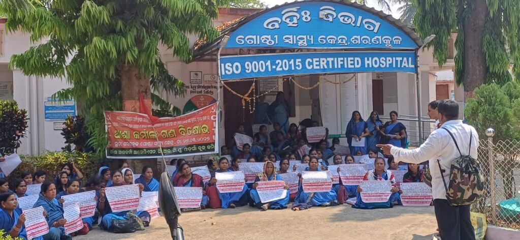 ୧୪ ଦଫା ଦାବୀ ନେ଼ଇ ଶରଣକୁଳ ଗୋଷ୍ଠୀ ସ୍ବାସ୍ଥ୍ୟ କେନ୍ଦ୍ର ସମ୍ମୁଖରେ ଆଶା କର୍ମୀ ଙ୍କ ଗଣ ବିକ୍ଷୋଭ