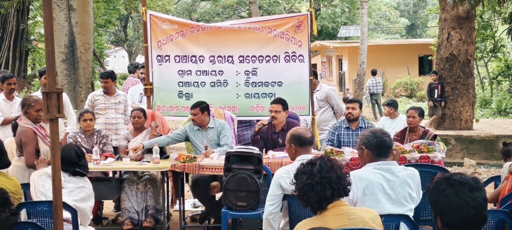 ରାୟଗଡ-୧୧/୫-ବିଷମକଟକ ପଞ୍ଚାୟତ ସମିତି ଅନ୍ତର୍ଗତ କୁର୍ଲି ଗ୍ରାମପଞ୍ଚାୟତର ଖମ୍ବେଶି ଗ୍ରାମରେ ବୁଧବାର ପୂର୍ବାହ୍ନ ୧୧ଟା ସମୟରେ ପ୍ରଧାନମନ୍ତ୍ରୀ ଜନଜାତି ଆଦିବାସୀ ନ୍ୟାୟ ମହା ଅଭିଯାନ ଯୋଜନା ସମ୍ପକିତ ପଞ୍ଚାୟତ ସ୍ତରୀୟ ସଚେତନତା ଶିବିର ଅନୁଷ୍ଠିତ କରାଯାଇଥିଲା । ଏହି ଶିବିରରେ ମୁଖ୍ୟ ଉନ୍ନୟନ ଅଧିକାରୀ ତଥା ନିର୍ବାହୀ ଅଧିକାରୀ ଜିଲ୍ଲାପରିଷଦ ରାୟଗଡ ଅକ୍ଷୟ କୁମାର ଖେମୁଣ୍ଡୁ ମୁଖ୍ୟ ଅତିଥି ରୂପେ ଯୋଗ ଦେଇଥିଲେ । ବିଷମକଟକ ବ୍ଲକ ଗୋଷ୍ଠୀ ଉନ୍ନୟନ ଅଧିକାରୀ ଶିବ ପ୍ରସାଦ ପଟ୍ଟନାୟକ ସଭାପତିତ୍ୱ କରିଥିଲେ । କେନ୍ଦ୍ର ଓ ରାଜ୍ୟ ସରକାରଙ୍କ ତରଫରୁ ଧାର୍ଯ୍ୟ କରାଯାଇଥିବା ସମୟ ସୀମା ଅର୍ଥାତ ତା.୩୦.୦୯.୨୦୨୫ ରିଖ ମଧ୍ୟରେ ପ୍ରଧାନମନ୍ତ୍ରୀ ଜନମନ ଯୋଜନାରେ ଆବଣ୍ଟନ କରାଯାଇଥିବା ସମସ୍ତ ଅସମ୍ପୂର୍ଣ ଏବଂ ନୂତନ ଭାବେ ଚିହ୍ନଟ ହୋଇଥିବା PM-JANMAN ହିତାଧିକାରୀମାନେ ଗୃହ ନିର୍ମାଣ କାର୍ଯ୍ୟ ସମ୍ପୂର୍ଣ କରିବାକୁ ବୈଠକରେ ଆଲୋଚନା କ୍ରମେ ହିତାଧିକାରୀଙ୍କୁ ପରାମର୍ଶ ଦେଇଥିଲ । ଧାର୍ଯ୍ୟ ସମୟ (୪ ମାସ) ମଧ୍ୟରେ ସମସ୍ତ ଗୃହ କାର୍ଯ୍ୟ ସମ୍ପୂର୍ଣ ହେଲେ ହିତାଧିକାରୀମାନଙ୍କୁ ୨୦୦୦୦ ଟଙ୍କା ସରକାରଙ୍କ ତରଫରୁ ପ୍ରୋତ୍ସାହନ ବା (incentive)