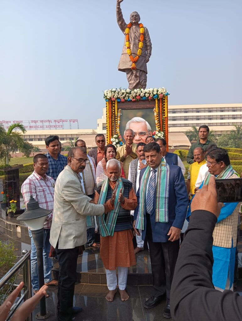ବିଶିଷ୍ଟ କବି,ପ୍ରବୀଣ ରାଜନେତା,ପୂର୍ବତନ ପ୍ରଧାନମନ୍ତ୍ରୀ ଭାରତରତ୍ନ ଅଟଳ ବିହାରୀ ବାଜପେୟୀଙ୍କ ୯୯ତମ ଜୟନ୍ତୀ ଓଡିଆ ଭାଷା, ସାହିତ୍ୟ ଓ ସଂସ୍କୃତି ବିଭାଗ ଆନୁକୁଲ୍ୟରେ ସ୍ୱତନ୍ତ୍ର କର୍ତ୍ତବ୍ଯରତ ଅଧିକାରୀ ଲକ୍ଷ୍ମୀଧର ବେହେରାଙ୍କ ସଂଯୋଜନାରେ ଆଜି ପ୍ରତ୍ୟୁଷରେ ଭୁବନେଶ୍ଵରସ୍ଥିତ ଅଖିଳ ଭାରତୀୟ ଆୟୁର୍ବିଜ୍ଞାନ ପ୍ରତିଷ୍ଠାନ ପରିସରସ୍ଥ ତାଙ୍କ ପ୍ରତିମୁର୍ତ୍ତିସ୍ଥଳିରେ ଅନୁଷ୍ଠିତ ହୋଇ ଶ୍ରଦ୍ଧାଞ୍ଜଳି ଅର୍ପଣ କରାଯାଇଛି । ଏହି କାର୍ଯ୍ୟକ୍ରମରେ ଅଧ୍ୟାପକ ଡ଼ଃ ରଙ୍ଗାଧର ସାହୁ, ରମେଶ ଚନ୍ଦ୍ର ପାତାଳସିଂହ, ଗିରିଜାଶଙ୍କର ମହାପାତ୍ର, ହରପ୍ରିୟା ପଟ୍ଟଯୋଶୀ ,ଲିପକ ମହାନ୍ତି, ଅମିତ ପାତାଳସିଂହଙ୍କ ସହିତ ଉଇ ଫର ଭୁବନେଶ୍ଵର, ଜୟ ଓଡିଶା ସଭ୍ୟବ୍ରୁନ୍ଦଙ୍କ ସହିତ ବିଭିନ୍ନ ବର୍ଗର ବ୍ୟକ୍ତିବିଶେଷ ଯୋଗଦେଇ ଶ୍ରଦ୍ଧାଞ୍ଜଳି ଅର୍ପଣ କରିଥିଲେ ।