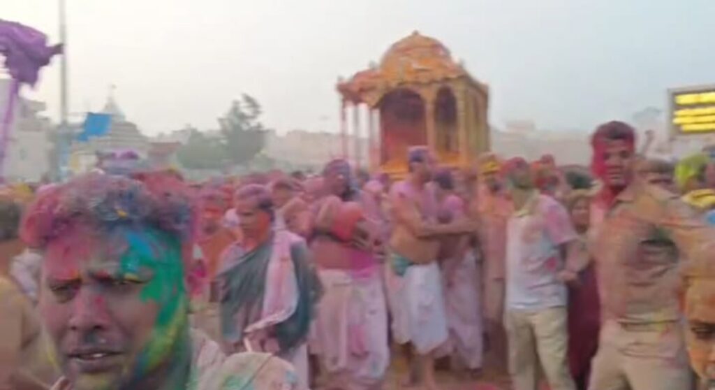 କାଉ କା କରିବା ପୂର୍ବରୁ ଦୋଳ ବେଦୀରେ ବିରାଜ ମାନ କରିଛନ୍ତି ଦୋଳ ଗୋବିନ୍ଦ, ଭୁ ଦେବୀ ଓ ଶ୍ରୀଦେବୀ। ଆଉ ଭକ୍ତ ଭଗବାନଙ୍କ ସହ ଖେଳିଲେ ଝିମିରି ଫଗୁ। ସେପଟେ ସକାଳ ୫ଟା ୪୫ରେ ନାଭିକଟା ମଣ୍ଡପରେ ପୂଜାର୍ଚନା ପରେ ବିମାନଙ୍କୁ ବିଜେ କରିଥିଲେ ଚଳନ୍ତି ପ୍ରତିମା।ତେବେ ମହାପ୍ରଭୁଙ୍କ ଦ୍ବାଦଶ ଯାତ୍ରା ମଧ୍ୟରୁ ଦୋଳଯାତ୍ରା ଅନ୍ୟତମ ହୋଇଥିବାବେଳେ ଶ୍ରୀମନ୍ଦିରରେ ଆଜି ଶ୍ରୀଜୀୟୁଙ୍କର ଅନୁଷ୍ଠିତ ହେବ ସୁନାବେଶ। ଗ୍ରହଣ ପଡୁଥିବାରୁ ଦିନ ପରିବର୍ତ୍ତେ ରାତିରେ ମହଣମହଣ ସୁନା ଅଳଙ୍କାରରେ ମହାପ୍ରଭୁ ବିଭୂଷିତ ହୋଇ ରାତି ତମାମ୍ ଭକ୍ତଙ୍କୁ ଦର୍ଶନ ଦେବେ। ସେପଟେ ଆଜି ମହାପ୍ରଭୁଙ୍କ ଆଜ୍ଞାମାଳ ପାଇ ଚଳନ୍ତି ପ୍ରତିମା ଦୋଳଗୋବିନ୍ଦ, ଭୂଦେବୀ, ଶ୍ରୀଦେବୀ ମଣି ବିମାନରେ ଦୋଳବେଦୀକୁ ବିଜେ କରିବା ସହ ଭକ୍ତଙ୍କ ସହିତ ଅବିର ଓ ଫଗୁ ଖେଳିଛନ୍ତି । ତେବେ ଆଜି ପବିତ୍ର ଦୋଳପୂର୍ଣ୍ନିମା ଅବସରରେ କେତୁଗ୍ରସ୍ତ ଗ୍ରସ୍ତୋଦୟ ଚନ୍ଦ୍ର ଗ୍ରହଣ ପଡୁଥିବାରୁ ଶ୍ରୀମନ୍ଦିରରେ ମହାପ୍ରଭୁଙ୍କ ନୀତିକାନ୍ତିରେ ଅନେକ ବ୍ୟତିକ୍ରମ ପରିଲକ୍ଷିତ ହେବ। ଅନ୍ୟପଟେ ଆଜି ଦୋଳପୂର୍ଣ୍ନିମାରେ ଅପରାହ୍ନ ୩ଟା ୨୦ ମିନିଟ୍ ୧୭ ସେକେଣ୍ଡରୁ ଗ୍ରହଣ ସ୍ପର୍ଶ ଆରମ୍ଭ ହୋଇ ସଂଧ୍ୟା ୬ଟା ୪୭ ମିନିଟ୍ ୧୩ ସେକେଣ୍ଡରେ ସର୍ବମୋକ୍ଷ ହେବ। ତେବେ ଗ୍ରହଣ ସ୍ପର୍ଶ ହେଲେ ଶ୍ରୀମନ୍ଦିରରେ ମହାପ୍ରଭୁଙ୍କ ସ୍ୱତନ୍ତ୍ର ନୀତିକାନ୍ତି ଆରମ୍ଭ ହେବ।