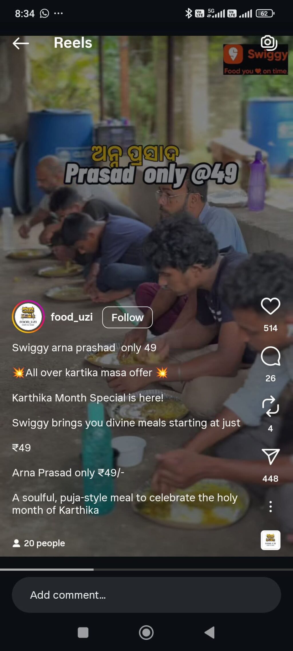 ମହାପ୍ରସାଦ ନାଁ’ ରେ ମୁନାଫା କମାଇବାର ମାଧ୍ୟମ ସାଜିଛି ଅନ୍ଲାଇନ୍। ଏହି ବେଆଇନ କାର୍ଯ୍ୟ ପାଇଁ ଶ୍ରୀମନ୍ଦିର ପ୍ରଶାସନ ପକ୍ଷରୁ ଜେଲ୍ ଦଣ୍ଡର ଭୟ ଦେଖାଯାଇଛି। ଏପରିକି ପୂର୍ବରୁ ସେବାୟତମାନେ କଡ଼ା ଭାଷାରେ ନିନ୍ଦା କରିଛନ୍ତି। ତଥାପି କେତେକ ଅସାଧୁ ବ୍ୟବସାୟୀଙ୍କ ଅନଲାଇନ୍ରେ ମହାପ୍ରସାଦ ନାଁ’ରେ ବ୍ୟବସାୟ କରିବାର ମୋହ ଭଙ୍ଗ ହୋଇନାହିଁ। ପୁଣି ଏକ ସଂସ୍ଥା ସୋସିଆଲ ମିଡିଆରେ ଅନ୍ନ ପ୍ରସାଦ ଅର୍ଡର ଦେବାକୁ ନିବେଦନ କରିଛନ୍ତି। ଗୁରୁତ୍ବପୂର୍ଣ୍ଣ କଥା swiggy ପରି ଏକ ବ୍ରାଣ୍ଡ ଅନଲାଇନ ଫୁଡ ଡେ଼ଲିଭରି ସଂସ୍ଥା ପୋଷ୍ଟରେ ଅନ୍ନ ପ୍ରସାଦ ମୂଲ୍ୟ ସୂଚିତ କରିଛି l କାର୍ତ୍ତିକ ମାସ ପାଇଁ ବିଶେଷ ରିହାତି ରହିଛି ଯାହାର ମୂଲ୍ୟ ୪୯ ଟଙ୍କା। ଯଦିଓ ମହାପ୍ରସାଦ ନ ଲେଖେଇ ଅନ୍ନପ୍ରସାଦ ଲେଖା ରହିଛି କିନ୍ତୁ ଜଗନ୍ନାଥ ମନ୍ଦିର ଅନ୍ନପ୍ରସାଦ ସହ ଅଭଡ଼ା କୁଡ଼ିଆ ରହିଛି l