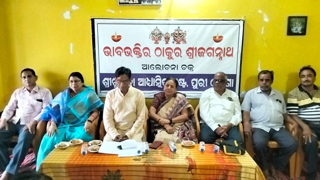 ପୁରୀ : ଶ୍ରୀଗୁଣ୍ଡିଚା ଆଧ୍ୟାତ୍ମିକ ଟ୍ରଷ୍ଟ ଓଡିଶା ପୁରୀ ଆନୁକୂଲ୍ୟରେ ଓଡିଶା ସଂଗୀତ ପରିଷଦ ପରିସରରେ ଭାବ ଭକ୍ତିର ଠାକୁର ଶ୍ରୀ ଜଗନ୍ନାଥ ଶୀର୍ଷକ ଆଲୋଚନା ଚକ୍ର ଅନୁଷ୍ଠିତ ହୋଇଯାଇଛି l ଆଲୋଚନା ଚକ୍ରରେ ଅଧ୍ୟକ୍ଷତା କରିଥିଲେ ବିଶିଷ୍ଟ ଶିକ୍ଷାବିତ ଶିବସୁନ୍ଦର ମିଶ୍ର l ଆଲୋଚନା ଚକ୍ରରେ ମତ ପ୍ରକାଶ ପାଇଥିଲା ଯେ ଶ୍ରୀଜଗନ୍ନାଥ ସଂସ୍କୃତି ଭାରତୀୟ ଦର୍ଶନର ମୌଳିକ ସ୍ତମ୍ବ ଥିବାବେଳେ ଭାବ ଓ ଭକ୍ତି ହେଉଛି ଶ୍ରୀଜଗନ୍ନାଥ ସଂସ୍କୃତିର ଦୁଇ ପ୍ରବାହ ମାନ ଧାରା l ବ୍ରହ୍ମର୍ଷି ନାରଦଙ୍କ ଠାରୁ ଆରମ୍ଭ କରି ଯମ, ଇନ୍ଦ୍ରଦ୍ୟୁମ୍ନ ଏବଂ ଐତିହାସିକ ପ୍ରମାଣରେ ଶଙ୍କରାଚାର୍ଯ୍ୟ, ରାମାନୁଜଚାର୍ଯ୍ୟ, ବଳଭlଚାର୍ଯ୍ୟ, ଶ୍ରୀ ଚୈତନ୍ୟ, ଶ୍ୟାମନନ୍ଦ, ରସିକାନନ୍ଦ ପ୍ରଭୁଙ୍କ ପର୍ଯ୍ୟନ୍ତ ମହାପ୍ରଭୁଙ୍କ ପ୍ରତି ଭାବ ଭକ୍ତି ଧାରାକୁ ଲୋକାନୁ ଶୀଳ କରିଛନ୍ତି l