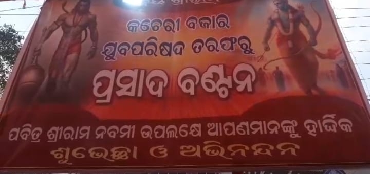 ରାମ ,,,ସିୟାରାମ,,ଜୟ ଜୟ ଶ୍ରୀରାମ ଧ୍ବନି ରେ କମ୍ପୁଛି ଭଦ୍ରକ ସାରା ସହରରେ | ଲାଗିଛି ଡାକବାଜି, ଗୈରିକମୟ ହୋଇଯାଇଛି ଚତୁର୍ଦ୍ଦିଗ । ପ୍ରଭୁ ଶ୍ରୀରାମ,, ପରମଭକ୍ତ ହନୁମାନ ଭ୍ରାତା ଲକ୍ଷ୍ମଣ ଓ ମାତା ସୀତା ଙ୍କ ଚିତ୍ର ରେ ସଜେଇ ହୋଇଛି ସହର ସମେତ ଆଖପାଖ ଅଞ୍ଚଳ | ଏଥର ଶ୍ରୀରାମ ନବମୀ ଉତ୍ସବ ର ଚମକ ପୂର୍ବ ବର୍ଷ ଅପେକ୍ଷା ଅଧିକ ବୋଲି ପ୍ରତୀୟମାନ ହେଉଛି l