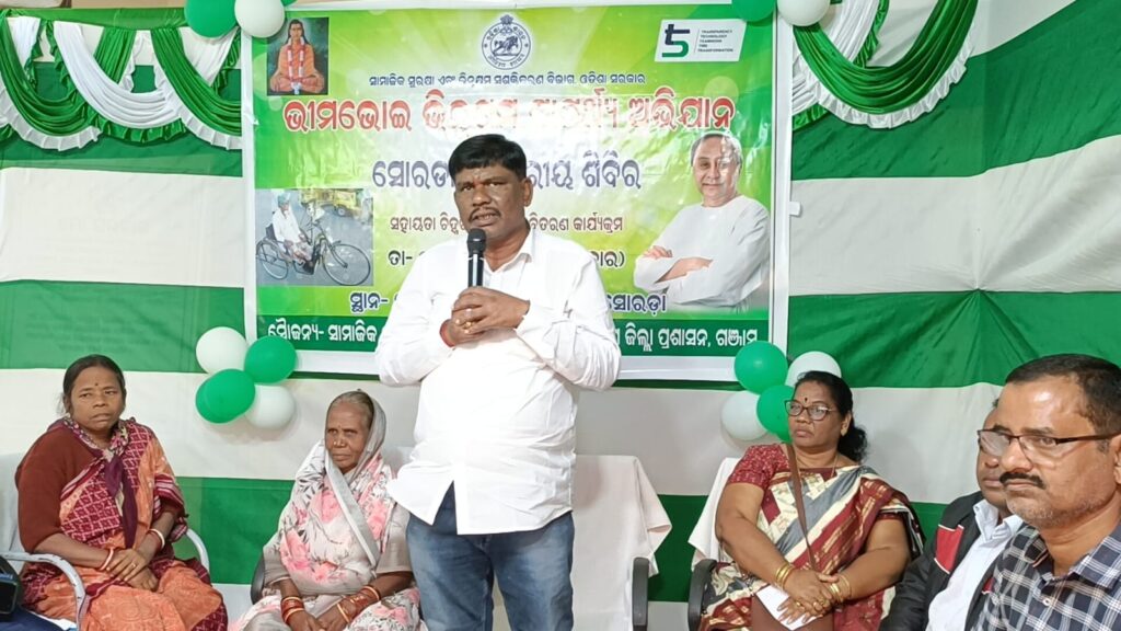 ବ୍ଲକ ତରଫରୁ ଭୀମଭୋଇ କାର୍ଯ୍ୟକ୍ରମ ସୋରଡ଼ା 2 1 2024 ସ ମି ସି ଗଞ୍ଜାମ ଜିଲ୍ଲା ସୋରଡା ବ୍ଲକ କାର୍ଯ୍ୟଳୟରେ ଭୀମ ଭୋଇ ଭିନ୍ନକ୍ଷମ ସାମର୍ଥ୍ୟ ଅଭିଯାନ ଅନୁଷ୍ଠିତ ହୋଇଛି।ଉକ୍ତ କାଯ୍ୟକ୍ରମରେ ମୁଖ୍ୟ ଅତିଥି ଭାବେ ବିଧାୟକ ପୂର୍ଣଚନ୍ଦ୍ର ସ୍ବାଇଁ,ବ୍ଲକ ଅଧ୍ୟକ୍ଷ ସାଇବାଣୀ ମଲ୍ଲିକ, ଗୋଷ୍ଠୀ ଉର୍ଣ୍ଣାୟନ ଅଧିକାରୀ ବିଜୟ କୁମାର ପ୍ରଧାନ, ମହିଳା ଓ ଶିଶୁ ବିକାଶ ଅଧିକାରୀ ସରୋଜିନୀ ବେହେରା,ରାଜ୍ୟ ସରକାରଙ୍କ ପୁରସ୍କୃତ ସରପଞ୍ଚ ତ୍ରିଲୋଚନ ସାହୁ ଯୋଗ ଦେଇ ପ୍ରଦୀପ ପ୍ରଜ୍ଜ୍ୱଳନ କରି ଏହି କାର୍ଯ୍ୟକ୍ରମକୁ ଆରମ୍ଭ କରିଥିଲେ।ଏହି ଆୟୋଜିତ ସଭାରେ ବିଧାୟକ ଦିବ୍ୟଙ୍ଗ ମାନଙ୍କୁ ଆଜିର ଦିନରେ ସମାଜର ମୁଖ୍ୟ ସ୍ରୋତକୁ ଆଣିବା ଓ ଭିନ୍ନକ୍ଷମ ସଶକ୍ତର ମହତ୍ତ୍ୱ ବୁଝାଇବା ସହ ରାଜ୍ୟ ସରକାରଙ୍କ ସୁ ଶାସନ ଦ୍ଵାରା ଜାତି ,ଧର୍ମ,ବର୍ଣ୍ଣ ଓ ଧନୀ ଗରିବ ସମସ୍ତ ଙ୍କୁ ସମାନ ଅଧିକାର ଦିଆଯାଇ ଭେଦଭାବ ନ ରହିବା ଉଧେସ୍ୟରେ ଉର୍ଣ୍ଣତ ଧରଣର ଉପକରଣ ବଣ୍ଟନ ସହ ବିଭିନ୍ନ ସୁବିଧା ଯୋଗାଇ ଦିଆଯାଉଛି ।