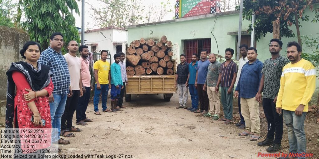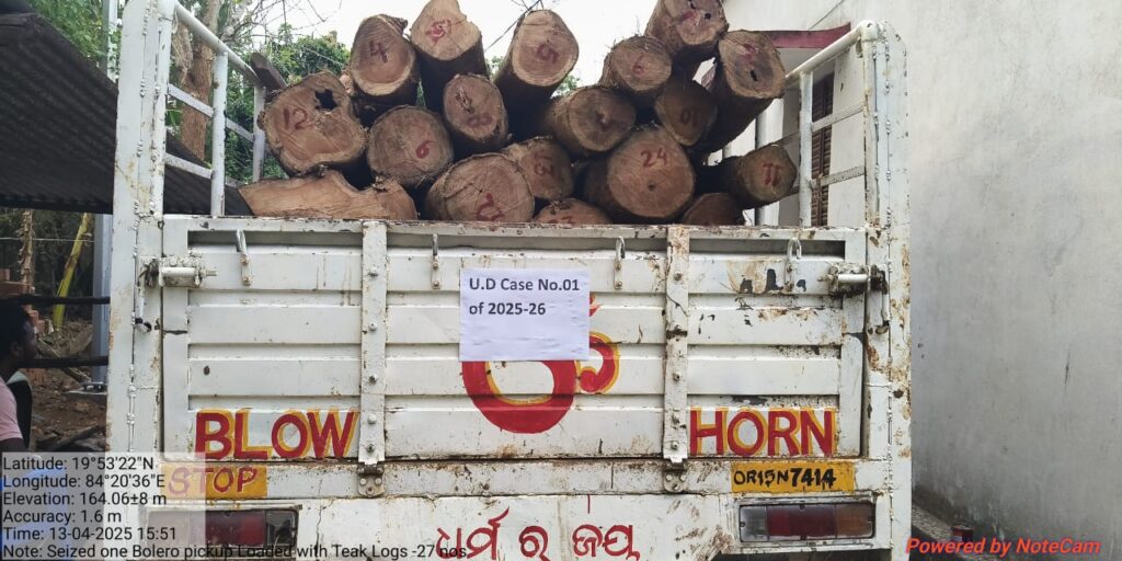 ଧଳା ରଙ୍ଗ ର ପିକଅପ୍ ଭେନ୍ ରେ ଶାଗୁଆନ କାଠ ଗଣ୍ଡୀ ଯାଉଥିବା ଦେଖି ଗାଡ଼ି ର ପିଛା କରି ଘାଟି ଖାରିଗୁଡ଼ା ଠାରେ ଗାଡ଼ି କୁ ଜବତ କରିବାରେ ସଫଳ ହୋଇଥିଲେ କିନ୍ତୁ ଦୁର୍ଭାଗ୍ୟ ବଶତଃ ରାତ୍ରି ର ସୁଯୋଗ ନେଇ ଘଟଣା ସ୍ଥଳ ରେ ଗାଡ଼ି ଛାଡି ଡ଼୍ରାଇଭର ଫେରାର ହେବାରେ ସଫଳ ହୋଇଥିବା ବେଳେ ଅଦ୍ୟ 13/4/25 ରେ ଏକ କେସ ରୁଜୁ କରାଯାଇ ଅଧିକ ତଦନ୍ତ ଚାଲିଥିବା ଶ୍ରୀମତୀ ସାହୁ ସୂଚନା ପ୍ରଦାନ କରିଛନ୍ତି।