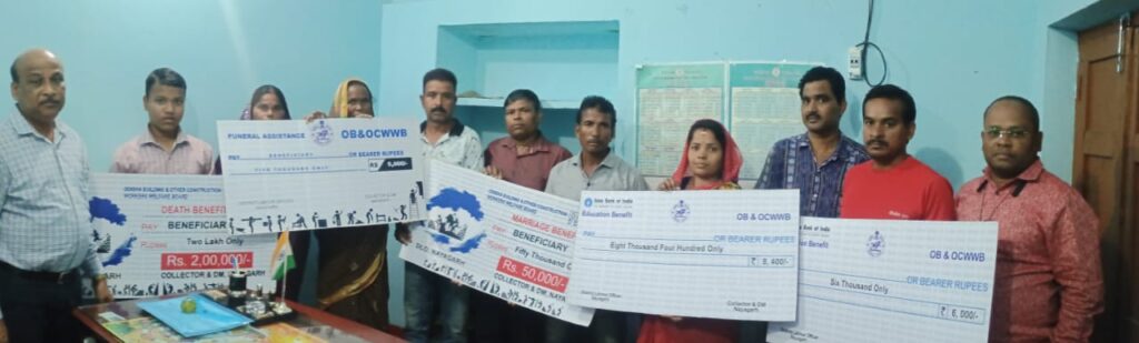 ନୟାଗଡ ଜିଲ୍ଲାପାଳ ଶ୍ରୀ ଅକ୍ଷୟ ସୁନୀଲ ଅଗ୍ରୱାଲଙ୍କ ନିର୍ଦ୍ଦେଶ କ୍ରମେ ଜିଲ୍ଲା ପ୍ରଭାଗୀୟ ଶ୍ରମ ଆୟୁକ୍ତଙ୍କ କାର୍ଯ୍ୟାଳୟ,ନୟାଗଡରେ ନିର୍ମାଣ ଏବଂ ଅଣ ସଙ୍ଗଠିତ ଶ୍ରମିକ ମାନଙ୍କ ପାଇଁ ଦ୍ୱିପାକ୍ଷିକ(fortnightly) ସହାୟତା ବଣ୍ଟନ କାର୍ଯ୍ୟକ୍ରମ ଅନୁଷ୍ଠିତ ହୋଇ ଯାଇଛି l ଏହି କାର୍ଯ୍ୟକ୍ରମରେରେ 39 ଜଣ ଆବେଦନକାରୀଙ୍କୁ ସର୍ବମୋଟ 28 ଲକ୍ଷ 52 ହଜାର 800 ଟଙ୍କାର ଅର୍ଥ ରାଶି ସିଧା ଆବେଦନକାରୀଙ୍କ ବ୍ୟାଙ୍କ ଆକାଉଣ୍ଟକୁ ପ୍ରଦାନ କରାଯାଇଥିଲା l ଏହି କାର୍ଯ୍ୟକ୍ରମରେ ଓଡିଶା କୋଠାବାଡି ଓ ଅନ୍ୟାନ୍ୟ ନିର୍ମାଣ ଶ୍ରମିକ କଲ୍ୟାଣ ବୋର୍ଡ ତରଫରୁ 6 ଜଣଙ୍କୁ ବିବାହ କାଳୀନ ସହାୟତା ବାବଦରେ 3,00,000/- ଟଙ୍କା,5 ଜଣ ମୃତ୍ୟୁ ବରଣ କରିଥିବା ହିତାଧିକାରୀଙ୍କ ନୋମିନିଙ୍କୁ ମୃତ୍ୟୁ କାଳୀନ ସହାୟତା ବାବଦରେ 10,00,000/- ଟଙ୍କା,4 ଜଣ ମୃତ୍ୟୁ ବରଣ କରିଥିବା ହିତାଧିକାରୀଙ୍କ ନୋମିନିଙ୍କୁ ଅନ୍ତେଷ୍ଟିକ୍ରିୟା ସହାୟତା ବାବଦରେ 20,000/- ଟଙ୍କା ଏବଂ 14 ଜଣ ହିତାଧିକାରୀଙ୍କ ପିଲା ପଢିବା ପାଇଁ ଶିକ୍ଷା ସହାୟତା ବାବଦରେ 1,32,800/- ଟଙ୍କା ପ୍ରଦାନ କରାଯାଇଥିଲା l ଏତଦଭିନ୍ନ ଓଡିଶା ଅଣସଙ୍ଗଠିତ ଶ୍ରମିକ ସାମାଜିକ ସୁରକ୍ଷା ବୋର୍ଡ ତରଫରୁ 10 ଜଣ ମୃତ୍ୟୁ ବରଣ କରିଥିବା ହିତାଧିକାରୀଙ୍କ ନୋମିନିଙ୍କୁ ମୃତ୍ୟୁ କାଳୀନ ସହାୟତା ବାବଦରେ 14,00,000/-(ଚଉଦ ଲକ୍ଷ ଟଙ୍କା) ର ଅର୍ଥ ରାଶି ପ୍ରଦାନ କରାଯାଇଥିଲା l ଏହି ବଣ୍ଟନ କାର୍ଯ୍ୟକ୍ରମରେ ରେ ନୟାଗଡ଼ ଜିଲ୍ଲା ଭାରପ୍ରାପ୍ତ ପ୍ରଭାଗୀୟ ଶ୍ରମ ଆୟୁକ୍ତ ଶ୍ରୀ ଚିତ୍ତ ରଞ୍ଜନ ରାଉତ, ଜିଲ୍ଲା ଶ୍ରମ ଅଧିକାରୀ (କଲ୍ଯାଣ) ଯୋଗ ଦେବା ସହିତ ଜିଲ୍ଲା ଶ୍ରମ କାର୍ଯ୍ୟାଳୟର କର୍ମଚାରୀ ଶ୍ରୀ ସତ୍ୟବ୍ରତ ପାଇକରାୟ, ଶ୍ରୀ ଅନିଲ କୁମାର ମହାରଣା, ଶ୍ରୀମତୀ ପଦ୍ମିନୀ ସାହୁ ପ୍ରମୁଖ କାର୍ଯ୍ୟକ୍ରମକୁ ସୁରଖୁରରେ ସମାପନ କରିବାରେ ସହଯୋଗ କରିଥିଲେ l ପୁନର୍ବାର ଆସନ୍ତା ନଭେମ୍ବର 1 ରୁ 15 ତାରିଖ ମଧ୍ୟରେ ଏଭଳି ସହାୟତା ବଣ୍ଟନ ଶିବିର ଅନୁ୍ଷ୍ଠିତ ହବ ବୋଲି ଜିଲ୍ଲା ଶ୍ରମ କାର୍ଯ୍ୟାଳୟ ତରଫରୁ ପ୍ରକାଶ l