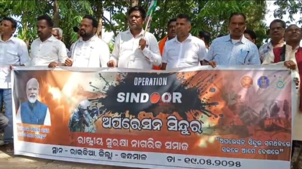 ରାଇକିଆ, ତା ୧୯/୫/୨୫ କନ୍ଧମାଳ ଜିଲ୍ଲା ରାଇକିଆ ବ୍ଲକ ଭାଜପା ପକ୍ଷରୁ ଅପରେସନ ସିନ୍ଦୁର ପରାକ୍ରମ ଶୋଭାଯାତ୍ରା କାର୍ଯ୍ୟକ୍ରମ ଆୟୋଜନ ହୋଇ ଯାଇଅଛି।. ଏହି ଶୋଭାଯାତ୍ରା କାର୍ଯ୍ୟକ୍ରମ ରେ ଶହ ଶହ ଜନସାଧାରଣ ହାତ ରେ ତ୍ରିରଙ୍ଗା ଧରି ମାଳାଞ୍ଚଳ ଛାତ୍ରlଵାସ ଠାରୁ ବାହାରି ସହର ପରିକ୍ରମା କରିବା ସହିତ ସୁଗଡ଼ବାଡି, ଗୁମାମାହା ପଞ୍ଚାୟତ ସହିତ ମାଣିକେଶ୍ଵର ପଞ୍ଚାୟତ ଠାରେ ଶୋଭାଯାତ୍ରା ରେ ପହଞ୍ଚିଥିଲେ। ଅପରେସନ୍ ସିନ୍ଦୁର” ର ସଫଳତା ପରିପ୍ରେକ୍ଷୀରେ ଭାରତୀୟ ସୈନ୍ୟ ବାହିନୀର ତ୍ୟାଗ ଓ ବଳିଦାନକୁ ସମ୍ମାନ ଜଣାଇବା ସକାଶେ ତ୍ରିରଙ୍ଗା ପତାକା ଧ୍ବଜା ଉଡାଇ ଶାନ୍ତିପୂର୍ଣ୍ଣ ଭାବେ ଭାରତୀୟ ବୀର ଜବାନ ମାନଙ୍କୁ ସମ୍ମାନ ଜଣାଇ ସେମାନଙ୍କ ସାହସକୁ ଆହୁରି ସଶକ୍ତ କରିବା ଉଦ୍ଦେଶ୍ୟରେ ଜାତି ଧର୍ମ ବର୍ଣ୍ଣ ନିର୍ବିଶେଷରେ ସମସ୍ତେ ଏକତ୍ରୀତ ହୋଇ ଭାରତ ମାତାକି-ଜୟ ଧ୍ବନୀରେ ସହର ପ୍ରକମପିତ ହେଉଥିବା ଦେଖିବାକୁ ମିଳିଥିଲା । ଏଥିରେ ଜିଲା ସଭାପତି ପଣ୍ଡିତ ବିଶିମାଝି,ରାଇକିଆ ମଣ୍ଡଳ ସଭାପତି ସନ୍ତୋଷ ପାତ୍ର,ସାଂସଦ ପ୍ରତିନିଧି ସନ୍ତୋଷ କୁମାର ଲେଙ୍କା, ସନକ ଦିଗlଲ, ନାରାୟଣ ପାତ୍ର, ଜିତେନ୍ଦ୍ର ମଲ୍ଲିକ ଙ୍କ ସମେତ ବହୁ ଭାଜପା ନେତା ଓ କର୍ମୀ ସାମିଲ ଥିଲେ l