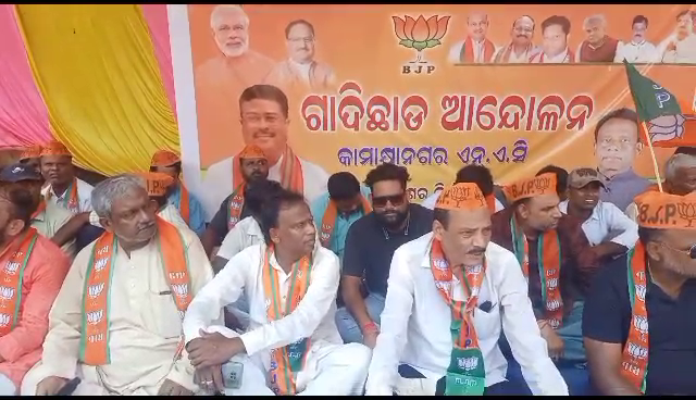 କାମାକ୍ଷାନଗର ଏନଏସି ଆଗରେ ବିଜେପିର ଭ୍ରଷ୍ଟାଚାର ଗାଦିଛାଡ଼ ଆନ୍ଦୋଳନ