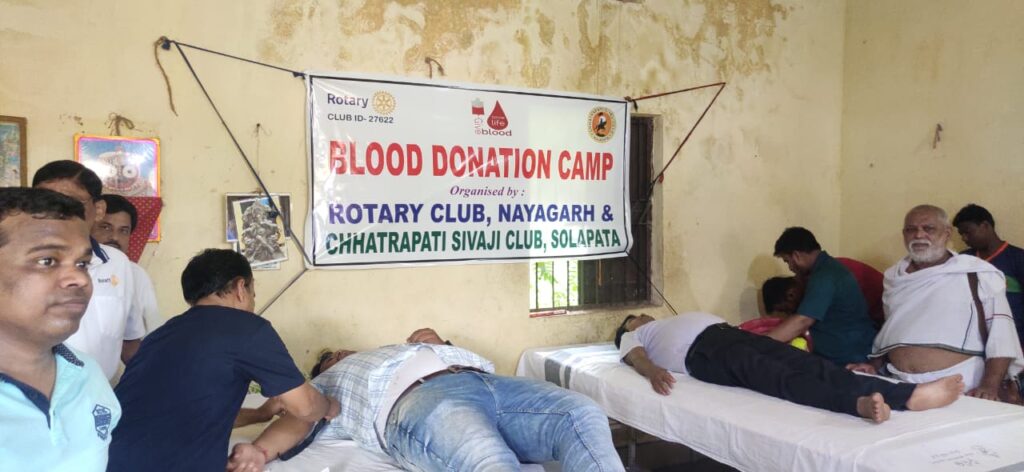 ନୟାଗଡ଼ର ଅଗ୍ରଣୀ ସ୍ବେଚ୍ଛାସେବୀ ଅନୁଷ୍ଠାନ ରୋଟାରୀ କ୍ଲବ ଏବଂ ଛତ୍ରପତି ଶିବାଜୀ କ୍ଲବ ସୋଲପଟା ର ମିଳିତ ସହଯୋଗ ରେ ଏକ ରକ୍ତଦାନ ଶିବିର ଆଜି ସୋଲପଟା ସ୍ଥିତ କମ୍ୟୁନିଟି ଗୃହରେ ଅନୁଷ୍ଠିତ ହୋଇଯାଇଛି। ଏହି ଶିବିର କୁ ଆନୁଷ୍ଠାନିକ ଭାବେ ରୋଟାରୀ କ୍ଲବ ର ବରିଷ୍ଠ ସଦସ୍ୟ ତଥା ନୟାଗଡର ପୂର୍ବତନ ନଗରପାଳ ରୋଟାରିଆନ ସୁବୋଧ ଚନ୍ଦ୍ର ପଟ୍ଟନାୟକ ଓ ସୋଲପଟା ଗ୍ରାମର ସଭାପତି ସନ୍ତୋଷ ନାୟକ ଉଦଘାଟନ କରିଥିଲେ। ଡାକ୍ତର ନରେଶ ନାୟକଙ୍କ ପ୍ରତ୍ୟକ୍ଷ ତତ୍ତ୍ଵାବଧାନରେ ଏହି ଶିବିର ଅନୁଷ୍ଠିତ ହୋଇଥିଲା ବେଳେ ରକ୍ତ ଭଣ୍ଡାରର କର୍ମଚାରୀ ଅଜୟ ପଟ୍ଟନାୟକ, ପ୍ରକାଶ କୁମାର ପାଣିଗ୍ରାହୀ, ରବୀନ୍ଦ୍ରନାଥ ସାହୁ ଓ ମାନସ କୁମାର ବେହେରା ରକ୍ତ ସଂଗ୍ରହ ଓ ପଞ୍ଜିକରଣ ରେ ସହାୟତା କରିଥିଲେ। ଯୁବକ ଓ ମହିଳା ମାନେ ଉତ୍ସାହର ସହ ରକ୍ତ ଦାନ କରୁଥିବା ଦେଖିବାକୁ ମିଳିଥିଲା । ରୋଟାରୀ କ୍ଲବ ର ସଦସ୍ୟ ଧିରେନ୍ଦ୍ର ପଟ୍ଟନାୟକ, ପ୍ରଶନ୍ନ ବସନ୍ତିଆ, ପୁର୍ଣ୍ଣ ଚନ୍ଦ୍ର ସାହୁ, ଲକ୍ଷ୍ମୀ ନାରାୟଣ ରଥ, ଅବିନାଶ ସାହୁ, ଏବଂ ଛତ୍ରପତି ଶିବାଜୀ କ୍ଲବ ତରଫରୁ ଦୀପକ କୁମାର ନାୟକ, ପୁଷ୍ପ ରଞ୍ଜନ ଜେନା, ପିଣ୍ଟୁ ପ୍ରଧାନ, କପିଳାସ ନାୟକ, ପ୍ରଦୀପ ବରାଡ ଓ ବାଉରିବନ୍ଧୁ ବେହେରା ପ୍ରମୁଖ ଏହି ଶିବିରକୁ ପରିଚାଳନା କରିବାରେ ସହାୟତା କରିଥିଲେ । ଆଜିର ରକ୍ତଦାନ ଶିବିର ରୁ ୩୦ ୟୁନିଟ ରକ୍ତ ସଂଗୃହୀତ ହୋଇଥିଲା।