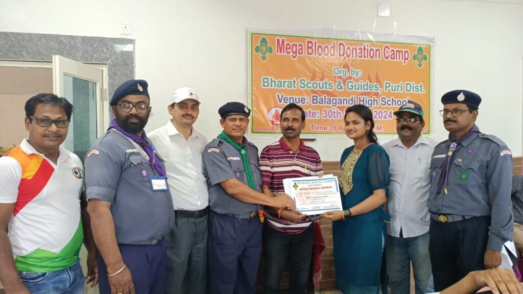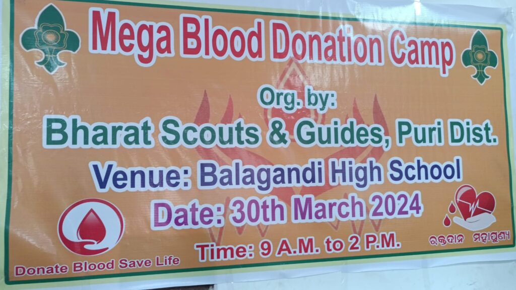 ଉତ୍କଳ ଦିବସର ଅବ୍ୟବହିତ ପୂର୍ବରୁ ପୁରୀ ଜିଲ୍ଲା ଭାରତ ସ୍କାଉଟ ଓ ଗାଇଡ ତରଫରୁ ଏକ ରକ୍ତଦାନ ଶିବିର ବଡ଼ଦାଣ୍ଡ ସ୍ଥିତ ବଳଗଣ୍ଡି ସରକାରୀ ଉଚ୍ଚ ବିଦ୍ୟାଳୟ ପରିସରରେ ଅନୁଷ୍ଠିତ ହୋଇଯାଇଛି l ଏହି କାର୍ଯ୍ୟକ୍ରମରେ ମୁଖ୍ୟ ଅତିଥି ଭାବେ ଭାରତ ସ୍କାଉଟ ଓ ଗାଇଡର ଜିଲ୍ଲା ମୁଖ୍ୟ କମିଶନର ତଥା ଜିଲ୍ଲା ଶିକ୍ଷା ଅଧିକାରୀ ଦୀପକ କୁମାର ପାଢ଼ୀ ଯୋଗଦାନ କରିଥିବା ବେଳେ ସମ୍ମାନିତ ଅତିଥି ଭାବେ ପ୍ରାକ୍ତନ ବରିଷ୍ଠ ଶିକ୍ଷାବିତ୍ ରଘୁନାଥ ମହାପାତ୍ର ଯୋଗଦାନ କରି ମହାପ୍ରଭୁ ଶ୍ରୀଜଗନ୍ନାଥଙ୍କ ନିକଟରେ ପ୍ରଦୀପ ପ୍ରଜ୍ବଳନ କରି କାର୍ଯ୍ୟକ୍ରମକୁ ଶୁଭ ଉଦଘାଟନ କରିଥିଲେ l ଏହି ଶିବିରରେ ପ୍ରାୟ ୪୫ ୟୁନିଟ୍ ରକ୍ତ ସଂଗ୍ରହ କରାଯାଇଥିଲା l ଏହି ଶିବିରରେ ବିଶେଷ କରି ଶିକ୍ଷକ, ଶିକ୍ଷୟିତ୍ରୀ, ସ୍ଵେଚ୍ଛାସେବୀ ଓ ଛାତ୍ରଛାତ୍ରୀମାନେ ରକ୍ତଦାନ ଦାନ କରିଥିଲେ l