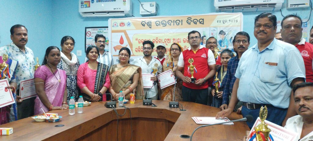 ବିଶ୍ବ ରକ୍ତଦାତା ଦିବସ ଉପଲକ୍ଷେ ୧୬ ଜଣ ସ୍ବେଛାକୃତ ରକ୍ତଦାତା ପୁରସ୍କୃତ l