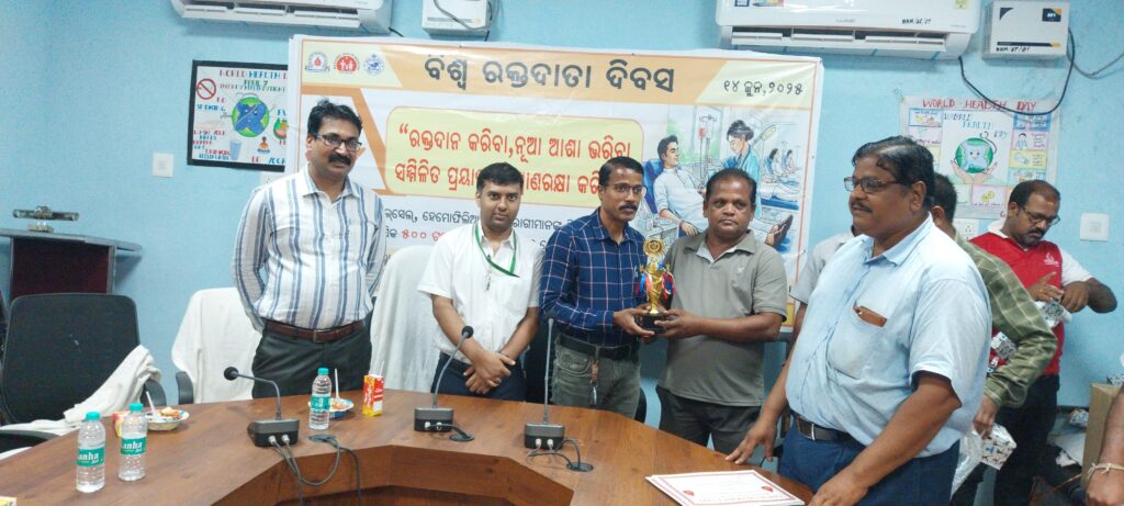 ବିଶ୍ବ ରକ୍ତଦାତା ଦିବସ ଉପଲକ୍ଷେ ୧୬ ଜଣ ସ୍ବେଛାକୃତ ରକ୍ତଦାତା ପୁରସ୍କୃତ
