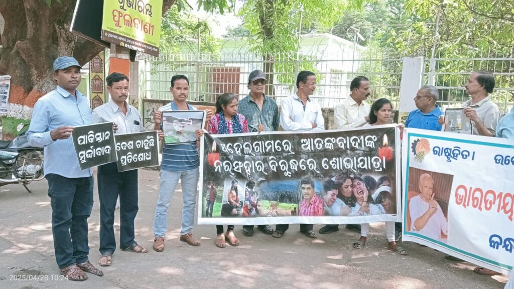 ପହଲଗାଁଓ ଠାରେ ଆତଙ୍କବାଦୀ ନରସଂହାର ବିରୋଧରେ ବି ଏମ ଏସ ଫୁଲବାଣୀ ପକ୍ଷରୁ ପ୍ରତିବାଦ।