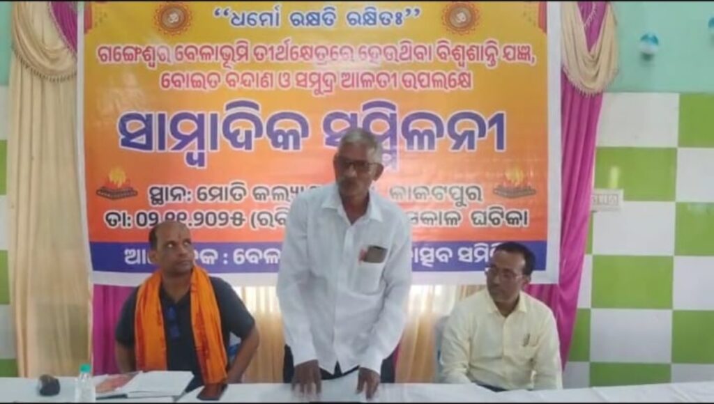 କାକଟପୁର.୦୨.୧୧()- ପବିତ୍ର କାର୍ତ୍ତିକ ପୂର୍ଣ୍ଣିମା ଓ ବାଲିଯାତ୍ରା ଉପଲକ୍ଷେ ଅସ୍ତରଙ୍ଗ ଛୁରିଆନା ସମୁଦ୍ର କୂଳ ଗଙ୍ଗେଶ୍ୱର ବେଳାଭୂମିରେ ବେଳାଭୁମି ଯଜ୍ଞ ମହୋତ୍ସବ ସମିତି ପକ୍ଷରୁ ହିନ୍ଦୁ ଧର୍ମ, ସଂସ୍କୃତି ଓ ପରମ୍ପରାର ଦୃଢୀକରଣ ଓ ପ୍ରସାର ନିମନ୍ତେ ଅସ୍ତରଙ୍ଗ ବେଳାଭୂମିରେ ଅଧୂଷ୍ଠିତ ଶ୍ରୀ ଶ୍ରୀ ଗଙ୍ଗେଶ୍ଵର ମହାଦେବଙ୍କ ପୀଠରେ ନଭେମ୍ବର ୫ ଓ ୬ ତାରିଖ (ବୁଧବାର ଓ ଗୁରୁବାର) ଦୁଇଦିନ ଧରି ଅଷ୍ଟମ ବାର୍ଷିକ ଯଜ୍ଞ ମହୋତ୍ସବ, ସମୁଦ୍ର ଆଳତୀ ଏବଂ ବୋଇତ ବନ୍ଦାଣ ଉତ୍ସବ ମହାସମାରୋହରେ ପାଳନ କରାଯିବ। ଏନେଇ ରବିବାର କାକଟପୁର ମୋତି ମଣ୍ଡପରେ ସମିତି ପକ୍ଷରୁ ସାମ୍ବାଦିକ ସମ୍ମିଳନୀ କରାଯାଇ ସୂଚନା ଦିଆଯାଇଛି। ପୂର୍ଣ୍ଣିମା ଦିବସରେ ବୋଇତ ବନ୍ଦାଣ ଉତ୍ସବ, ଗୋମାତା ପୂଜନ, ଗଙ୍ଗେଶ୍ୱର ମହାଦେବଙ୍କ ଘଟ ସ୍ଥାପନ, ସୂର୍ଯ୍ୟପୂଜା, ଯଜ୍ଞ, ସଙ୍କୀର୍ତ୍ତନ ଶୋଭାଯାତ୍ରା, ନଗର କୀର୍ତ୍ତନ, ପ୍ରସାଦ ସେବନ, ଯଜ୍ଞଶିଖା ପତ୍ରିକା ଉନ୍ମୋଚନ ସହ ସାଧୁସନ୍ଥ ମାନଙ୍କ ଦ୍ଵାରା ସମୁଦ୍ର ଆଳତୀ କାର୍ଯକ୍ରମ କରାଯିବ। ଛାଡଖାଇ ପର୍ବ ଦିନ ସ୍ଥାନୀୟ ଛାତ୍ରଛାତ୍ରୀଙ୍କ ଦ୍ବାରା କଳା ଓ ପ୍ରତିଭା ପ୍ରଦର୍ଶନ ମାଟିର ମହକ କାର୍ଯକ୍ରମ ଓ ବିସର୍ଜନ ଉତ୍ସଵ ଆୟୋଜିତ ହେବ। ଏହି ଉତ୍ସବରେ ହଜାର ହଜାର ହିନ୍ଦୁ ଧର୍ମର ବ୍ୟକ୍ତିବିଶେଷ ଓ ସାଧୁସନ୍ଥ ମାନେ ଯୋଗଦେବେ। ଏହି ଉତ୍ସବରେ ବିପୁଳ ମାତ୍ରାରେ ହିନ୍ଦୁ ଭାଈ ଭଉଣୀ ମାନେ ଯୋଗ ଦେବାକୁ ସାମ୍ବାଦିକ ସମ୍ମିଳନୀ ମାଧ୍ୟମରେ ବେଳାଭୁମି ଯଜ୍ଞ ମହୋତ୍ସବ ସମିତି ସଭାପତି ଅକ୍ଷୟ କୁମାର ପରିଡ଼ା, ସମ୍ପାଦକ ଚିନ୍ମୟ ପ୍ରକାଶ ଦାସ, କର୍ମକର୍ତ୍ତା ରୁପନ୍ ଭୋଇ ଓ ସାଂସ୍କୃତିକ ସମ୍ପାଦକ ସୁଦର୍ଶନ ସ୍ବାଇଁ ପ୍ରମୁଖ ନିବେଦନ କରିଛନ୍ତି।