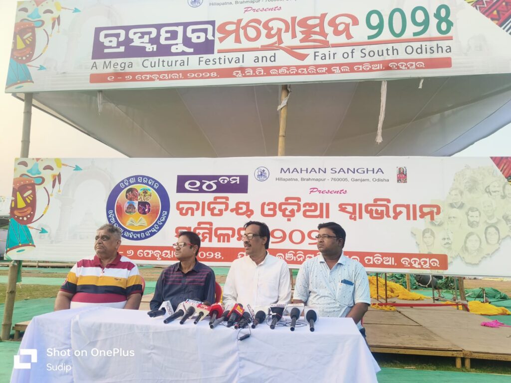 ଅଗ୍ରଣୀ ସାଂସ୍କୃତିକ ମହୋତ୍ସଵ ବ୍ରହ୍ମପୁର ମହୋତ୍ସବ 25 ସହ ଚଉଦ ତମ ଜାତୀୟ ଓଡିଶା ସ୍ୱାଭିମାନ ସମ୍ମିଳନୀ ଆସନ୍ତା ଫେବୃଆରୀ 1 ରୁ 6 ପର୍ଯ୍ୟନ୍ତ ସ୍ଥାନୀୟ ଇଞ୍ଜିନିୟେରିଙ୍ଗ ସ୍କୁଲ ଖେଳ ପଡିଆ ଠାରେ ଅନୁଷ୍ଠିତ ହେବ l ଛ ଦିନ ବ୍ୟାପି ମହୋତ୍ସବ ରେ ରାଜ୍ୟ ଓ ରାଜ୍ୟ ବାହାରୁ ବିଭିନ୍ନ କିସମ ର ଷ୍ଟଲ ସହ ସତୁରୁରୀ ରୁ ଅଧିକ ବିଭିନ୍ନ ସାଂସ୍କୃତିକ ଦଳ ନିଜର କଳା ପ୍ରଦର୍ଶନ କରିବା ସହ, ପ୍ରତ୍ୟକ ଦିନ ଓଡିଶା ର ପଯ୍ୟଟନ, ସାହିତ୍ୟ, ସଂସ୍କୃତି ଶୀର୍ଷକ ସହ ବିଭିନ୍ନ ଆଲୋଚନା ଚକ୍ର ଅନୁଷ୍ଠିତ ହେବ l ଏହି ଅବସରରେ ବ୍ରହ୍ମପୁର ଇଞ୍ଜିନିଏରିଙ୍ଗ ସ୍କୁଲ ଖେଳ ପଡିଆ ଠାରେ ଚୂଡାନ୍ତ ପ୍ରସୁତି ଅବସରରେ ସାମ୍ବାଦିକ ସମିଳନୀ ରେ ଆୟୋଜକ ତଥା ମହାନ ସଂଘ ସଭାପତି ଶ୍ରୀ ସୁଶାନ୍ତ କୁମାର ସାବତ ସୂଚନା ଦେଇଛନ୍ତି l ଏହି ଅବସରରେ ସଭାପତି ଶ୍ରୀ ସୁଶାନ୍ତ କୁମାର ସାବତ,ଙ୍କ ସମେତ ସାଧାରଣ ସମ୍ପାଦକ ଶ୍ରୀ ଇ ପ୍ରଶାନ୍ତ କୁମାର ପାତ୍ର, ମହୋତ୍ସବ ସମ୍ପାଦକ ଶ୍ରୀ ଗୋପାଳ ପଟନାୟକ, ପ୍ରକାଶ ଭାଜନୀ, ସଞ୍ଜୟ ମାଝୀ, ରେସମ୍ପାସ ମାର୍କେଟିଙ୍ଗ ଇଭେଣ୍ଟ ଏମ ଡି ଶ୍ରୀ ରବିଶଙ୍କର, ବିଭୀଷଣ ମଲିକ, , ତପନ ପଣ୍ଡା, ଶ୍ରୀମତୀ ନିବେଦିତା ପାଢ଼ୀ, ଶ୍ରୀମତୀ ସାଧନା ପାଢ଼ୀ, , ରିତାଞ୍ଜଳି ସ୍ୱାଇଁ, ମିନା ଦାଶ,ଅନିଲ ପାତ୍ର, ଅନନ୍ତ ପ୍ରଧାନ, ମନରଞ୍ଜନ ପାଢ଼ୀ, ପଣ୍ଡିତ ଶୁଭମ ପଣ୍ଡା ପ୍ରମୁଖ ଙ୍କ ସମେତ ବହୁ ସଦସ୍ୟ ସଦସ୍ୟା ଅଂଶ ଗ୍ରହଣ କରିଥିଲେ l
