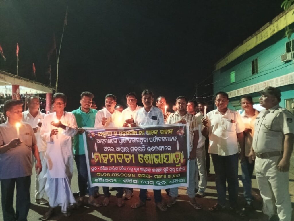 ଆତଙ୍କବାଦୀ ଆକ୍ରମଣ ପ୍ରତିବାଦରେ ଗଁଦିଆରେ ମସାଲଓ ମହମବତୀ ଶୋଭାଯାତ୍ରା