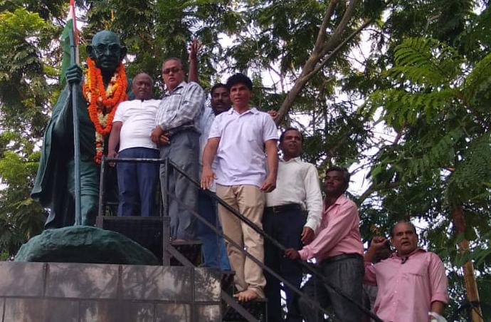 ସମ୍ବିଧାନ ଓ ଧର୍ମନିରପେକ୍ଷତାର ସୁରକ୍ଷା ପାଇଁ ଆହ୍ୱାନ ସହରର ଅଗ୍ରଣୀ ସାଂସ୍କୃତିକ ଅନୁଷ୍ଠାନ ପୂଜ୍ୟ ପୂଜା ସମିତି ପକ୍ଷରୁ ଆଜି ମହାନ ଦେଶ ଭକ୍ତ, ସ୍ୱାଧୀନତା ସଂଗ୍ରାମର ମହାନାୟକ ତଥା ସତ୍ୟ ଓ ଅହିଂସାର ପୂଜାରୀ ମହାତ୍ମା ଗାନ୍ଧିଜୀଙ୍କ ୧୫୫ତମ ଜୟନ୍ତୀକୁ ଯଥା ମର୍ଯ୍ୟାଦାର ସହ ପାଳନ ହୋଇଯାଇଛି l ସମିତି ସମ୍ପାଦକ ଏସ. ଶାମ୍ବାଶିବା ରାଓଙ୍କ ଅଧ୍ୟକ୍ଷତାରେ ସ୍ଥାନୀୟ ଗାନ୍ଧି ନଗର ଛକଠାରେ ଆୟୋଜିତ ଏହି କାର୍ଯ୍ୟକ୍ରମର ଆରମ୍ଭରେ ଗାନ୍ଧିଜୀଙ୍କ ପ୍ରତିମୂର୍ତ୍ତିରେ ବିଶିଷ୍ଟ ସମାଜସେବୀ ଇ. ତେଜେଶ୍ୱର ରାଓ ମାଲ୍ୟାର୍ପଣ କରିବା ପରେ ଏକ ସ୍ମୃତି ସଭା ଅନୁଷ୍ଠିତ ହୋଇଥିଲା l ସାମ୍ପ୍ରତିକ ପରିସ୍ଥିତିରେ ଗାନ୍ଧିଜୀଙ୍କ ସ୍ବପ୍ନକୁ ସାକାର କରିବାକୁ ହେଲେ ଦେଶର ସର୍ବୋଚ୍ଚ ଗ୍ରନ୍ଥ ଭାରତବର୍ଷର ସମ୍ବିଧାନ,ଗଣତନ୍ତ୍ର ଓ ଧର୍ମନିରପେକ୍ଷତାର ସୁରକ୍ଷା ପାଇଁ ସମସ୍ତ ଭାରତୀୟ ଏକ ହେବାପାଇଁ ଆହ୍ୱାନ ଦିଆଯାଇଥିଲା l ଦେଶରେ ସମାଜବାଦ ପ୍ରତିଷ୍ଠା ପାଇଁ ସଂକଳ୍ପ ନିଆଯାଇଥିଲା l ଆଜିର ଏହି କାର୍ଯ୍ୟକ୍ରମରେ ମାନବ ଅଧିକାର ସୁରକ୍ଷା ମଞ୍ଚର ସଭାପତି ଗଗନ ଚନ୍ଦ୍ର ମଲ୍ଲିକ, ସୁରେନ୍ଦ୍ର ନାଥ ପଣ୍ଡା, କାହ୍ନୁ ଚରଣ ପାତ୍ର, ଅମୁଲ୍ୟ ଚନ୍ଦ୍ର ପଣ୍ଡା, ବିଜୟ ଚନ୍ଦ୍ର ବିଶୋଇ,ଅଶୋକ କୁମାର ଦଳାଇ,ସତ୍ୟ ନାରାୟଣ ରାଓ,ବିରେନ କୁମାର ବେହେରା,ମିଳିତ ରେଳବାଇ ଆନ୍ଦୋଳନର ଆବାହକ ସରୋଜ ପଟ୍ଟନାୟକ, ମହାନ ସଂଘର ସଭାପତି ସୁଶାନ୍ତ ସାବତ,ଆଦିତ୍ୟ ରଥ,ପ୍ରିତିଶ ପାଣିଗ୍ରାହୀ,ମହିମା ର ସମ୍ପାଦକ ଶିବ ସୁନ୍ଦର ରଥ, ଲୋକନାଥ ପରିଡା, ଡି. କେଶବ ରାଓ, ଅବନୀ ଗୟା ପ୍ରମୁଖ ଆଲୋଚନାରେ ଅଂଶ ଗ୍ରହଣ କରିଥିଲେ l