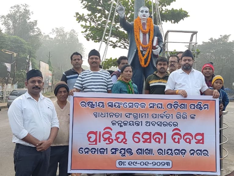 ରାୟଗଡ଼ା: ରାୟଗଡ଼ା ନେତାଜୀ ସଂଯୁକ୍ତ ଶାଖା ଆନୁକୂଲ୍ୟରେ ସମାଜସେବୀ ତଥା ସ୍ୱାଧୀନତା ସଂଗ୍ରାମୀ ମା ପାର୍ବତୀ ଗିରି ଙ୍କ ଜନ୍ମ ଜୟନ୍ତୀ ଅବସରରେ ରାୟଗଡା ନଗର ଠାରେ ରାଷ୍ଟ୍ରୀୟ ସ୍ୱୟଂସେବକ ସଙ୍ଘ, ଓଡିଶା ପଶ୍ଚିମ ପ୍ରାନ୍ତ ର ପ୍ରାନ୍ତୀୟ ସେବା ଦିବସ ପାଳନ କରାଯାଇଥିଲା। ଏହି ପରିପେକ୍ଷୀରେ ଆଜି ରାୟଗଡା ସହର ର ସମସ୍ତ ମହାପୁରୁଷ ମାନଙ୍କ ପ୍ରତିମୂର୍ତ୍ତି ସ୍ଥାନ ରେ ସ୍ୱଛତା କାର୍ଯ୍ୟକ୍ରମ କରାଯିବା ସହ ପ୍ରତିମୂର୍ତ୍ତି ରେ ପୁଷ୍ପ ମାଲ୍ୟ ଦିଆଯାଇଥିଲା। ଉକ୍ତ କାର୍ଯ୍ୟକ୍ରମ ରେ ମୁଖ୍ୟ ଅତିଥିଭାବେ ବରିଷ୍ଠ ସାମ୍ବାଦିକ ଡ଼କ୍ଟର ବାଦଲ କୁମାର ତା, ସମାଜସେବୀ ତଥା ଜିଲ୍ଲା ଶିଶୁ ମଙ୍ଗଳ ସମିତି ଅଧକ୍ଷା ଶ୍ରୀମତୀ ବିଦୁଲତା ହୁଇକା, ବରିଷ୍ଠ ଆଇନଜିବି ଶ୍ରୀ ପଦ୍ମନାଭ ଦାଶ ଉପସ୍ଥିତ ଥିଲେ । ମା ପାର୍ବତୀ ଗିରି ଥିଲେ ଏପରି ଜଣେ ସ୍ବାଧୀନତା ସଂଗ୍ରାମୀ ଯିଏ ବ୍ରିଟିସ୍ଙ୍କ ସହିତ ଲଢ଼ିବା ପାଇଁ ମାତ୍ର ୧୧ ବର୍ଷରେ ସ୍କୁଲ୍ ଛାଡ଼ିବାର ନିଷ୍ପତ୍ତି ନେଇଥିଲେ। ସମାଜସେବା ପାଇଁ ସେ ନିଜ ଜୀବନକୁ ଉତ୍ସର୍ଗ କରିଦେଇଥିଲେ। ବରଗଡ଼ ଜିଲ୍ଲାର ସମଲେଇପଦର ଗ୍ରାମରେ ୧୯ ଜାନୁଆରି ୧୯୨୬ରେ ତାଙ୍କର ଜନ୍ମ, । ବିଧବା ଓ ଅନାଥ ଶିଶୁଙ୍କ ଲାଗି ‘କସ୍ତୁରବା ଗାନ୍ଧୀ ମାତୃ ନିକେତନ’ ନାମରେ ଏକ ଆଶ୍ରମ ପ୍ରତିଷ୍ଠା କରିଥିଲେ। ନିରାଶ୍ରୟ ଶିଶୁଙ୍କ ପାଇଁ ‘ଡକ୍ଟର ସାନ୍ତ୍ରା ବାଳନିକେତନ’ ନାମରେ ଆଉ ଏକ ବାଳାଶ୍ରମ ଖୋଲିଥିଲେ ୧୯୬୧ ମସିହାରେ ବିନୋବା ଭାବେଙ୍କ ଆହ୍ବାନକ୍ରମେ ଭୂଦାନ ଆନ୍ଦୋଳନରେ ସାମିଲ ହୋଇ ଦୀର୍ଘ ୧୨ ବର୍ଷ ମଧ୍ୟପ୍ରଦେଶ, ଓଡ଼ିଶା, ବିହାର, ଉତ୍ତର ପ୍ରଦେଶ, କେରଳ, ଆସାମ ଆଦି ରାଜ୍ୟମାନଙ୍କରେ ପଦଯାତ୍ରା କରିଥିଲେ। ଓଡ଼ିଶାର ଗ୍ରାମାଞ୍ଚଳର ଜେଲ୍ମାନଙ୍କର ଅବସ୍ଥାରେ ଉନ୍ନତି ଓ କୁଷ୍ଠ ଦୂରୀକରଣ ଦିଗରେ ମଧ୍ୟ ତାଙ୍କର ଅତୁଳନୀୟ ଅବଦାନ ଥିଲା।ସମ୍ପୂର୍ଣ କାର୍ଯ୍ୟକ୍ରମ କୁ ଶାଖା ର ସ୍ୱୟଂ ସେବକ ଶ୍ରୀ ଆଲୋକ ସ୍ୱାଇଁ, ବିଦ୍ୟା ଭୂଷଣ ପଣ୍ଡା, ଶ୍ୟାମ କୁମାର ଦାଶ, ଶ୍ରୀ ଯୋଗେଶ୍ୱର ଦାଶ, ଶ୍ରୀ ଭାଗିରଥି ଶତପଥୀ, ଶ୍ରୀ ସତ୍ୟ ସେଠି, ଏମ. ବିଦ୍ୟା ସାଗର , ଟି. ନାଗରାଜୂ, ଅଜୟ କୁମାର ଶର୍ମା, ସନ୍ତୋଷ କୁମାର ହିକକା, ରାଜେଶ କୁମାର ପାଣିଗ୍ରାହୀ ଏବଂ ଶ୍ରୀ ରାମଚନ୍ଦ୍ର ହୁଇକା ପରିଚାଳନା କରିଥିଲେ।