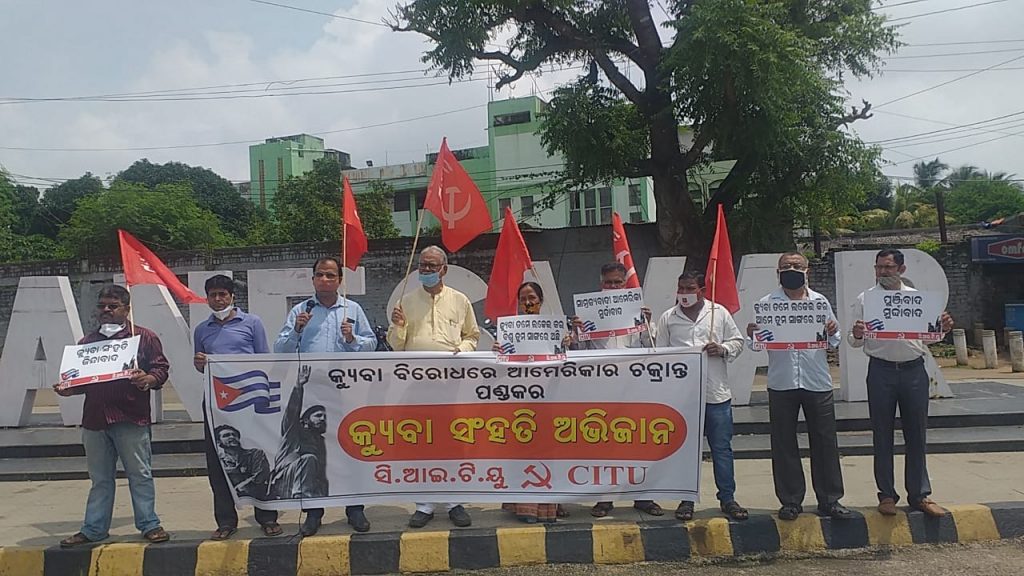 କ୍ୟୁବା ରାଷ୍ଟ୍ର ଉପରେ ହେଉଥିବା ଚକ୍ରାନ୍ତକୁ ନେଇ ସି.ଆଇ.ଟି.ୟୁ.ର ବିକ୍ଷୋଭ।