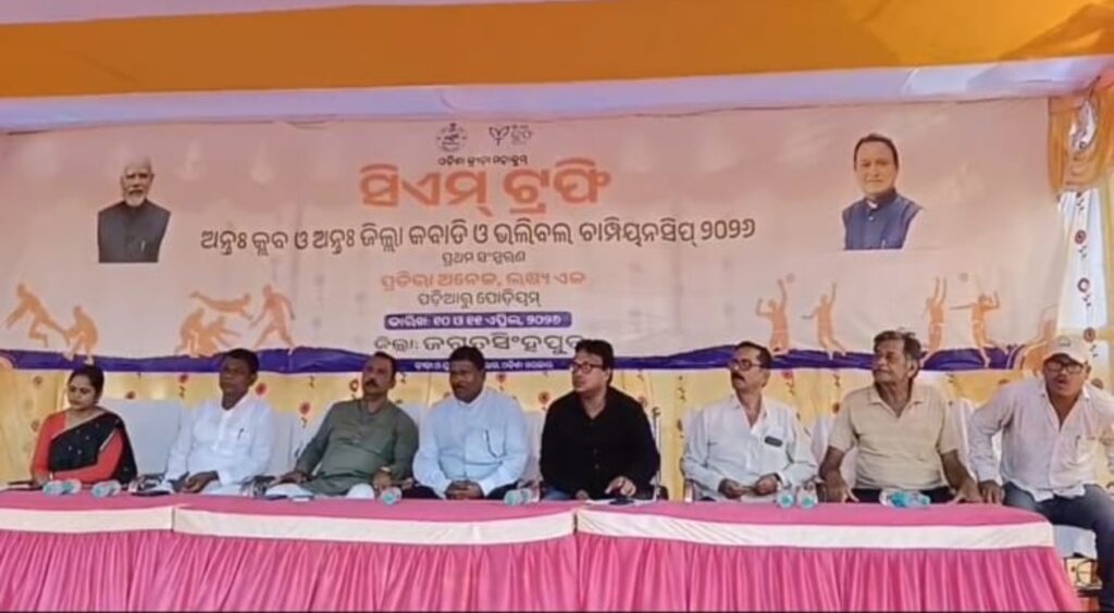 Date-11/04/26 ଜଗତସିଂହପୁର ସ୍ଥିତ ସ୍ଥାନୀୟ ନବକୃଷ୍ଣ ଚୌଧୁରୀ ଷ୍ଟାଡିଅମ ଠାରେ ସିଏମ ଟ୍ରଫି ଆନ୍ତଃ କ୍ଲବ ଓ ଆନ୍ତଃଜିଲ୍ଲା କବାଡି, ଭଲିବଲ, ଖୋଖୋ ପ୍ରତିଯୋଗିତା -୨୦୨୬, କ୍ରୀଡା ଜିଲ୍ଲା ବିଦ୍ୟାଳୟ ସମୂହ କ୍ରୀଡା ସଂଗଠନ ଜଗତସିଂହପୁର ସୌଜନ୍ୟରୁ ଉଦଘାଟିତ ହୋଇଯାଇଛି l ଜଗତସିଂହପୁରର ଅତିରିକ୍ତ ଜିଲ୍ଲାପାଳ ଜ୍ୟୋତିଶଙ୍କର ରାୟଙ୍କ ଅଧ୍ୟକ୍ଷତାରେ ଅନୁଷ୍ଠିତ ଉଦଘାଟନୀ ସଭାରେ ଜଗତସିଂହପୁରର ମାନ୍ୟବର ସାଂସଦ ଶ୍ରୀ ବିଭୁ ପ୍ରସାଦ ତରାଇ ମୁଖ୍ୟ ଅତିଥି ଭାବରେ,ବାଲିକୁଦା -ଏରସମାର ମାନ୍ୟବର ବିଧାୟକ ସାରଦା ପ୍ରସନ୍ନ ଜେନା,ଜିଲ୍ଲା ପରିଷଦର ସଭାପତି ଶ୍ରୀ ମନୋଜ କୁମାର ଭୋଇ,