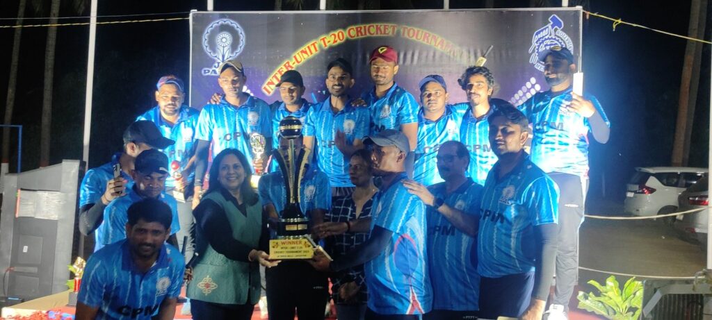ଜେକେ ଆନ୍ତଃ କମ୍ପାନୀ ସ୍ତରୀୟ କ୍ରିକେଟ ଟୁର୍ଣ୍ଣାମେଣ୍ଟ ଉଦଯାପିତ ରାୟଗଡା : ୦୭/୦୧ /୨୦୨୪ ଗତ ଜାନୁଆରୀ ୪ ତାରିଖ ରୁ ଚାଲିଥିବା ଜେକେ ଆନ୍ତଃ କମ୍ପାନୀ ସ୍ତରୀୟ କ୍ରିକେଟ ଟୁର୍ଣ୍ଣାମେଣ୍ଟ ଆଜି ୭/୧/୨୦୨୪ ରେ ଉଦଯାପିତ ହୋଇ ଯାଇଛି . ଆଜି ର ଏହି ଶୁଭ ଉଦଯାପନୀ ଦିବସରେ ଫାଇନାଲ ମ୍ୟାଚ ଜେକେପିଏମ ରାୟଗଡା ଏବଂ ସିପିଏମ ସୋନାଗଡ଼ ମଧ୍ୟ ରେ ଖେଳାଯାଇଥିଲା. ଏହି ମ୍ୟାଚ ରେ ଟସ ଜିଣି ପ୍ରଥମେ ଜେକେପିଏମ ଟିମ ବ୍ୟାଟିଂ କରିଥିଲା . ଫାଇନାଲ ମ୍ୟାଚ ର ଏହି ଖେଳ ରେ ସିପିଏମ ଟିମ ଜେକେପିଏମ ଟିମ କୁ ପରାସ୍ତ କରିଥିଲା .ମୋଟ ୧୨୭ ରନ ର ଲଖ୍ୟ ରଖି ସିପିଏମ ଟିମ ଖେଳ ଜାରି ରଖିଥିଲା . ଆଜିର ଏହି ମ୍ୟାଚ ରେ ସିପିଏମ ଟିମ କୁ ଚାମ୍ପିୟନ ଘୋଷଣା କରାଯାଇଥିବା ବେଳେ ଇତେଶ କୁମାର ଆର ଗମିତ ଙ୍କୁ ମ୍ୟାନ ଅଫ ମ୍ୟାଚ ଓ ମ୍ୟାନଅଫ ସିରିଜ ଘୋଷଣା କରାଯାଇଥିଲା . ଆଜିର ଏହି ଉଦଯାପନୀ ସମାରୋହ ରେ ମୁଖ୍ୟ ଅତିଥି ଭାବେ ସିପିଏମ ର ୟୁନିଟ ହେଡ ଶ୍ରୀ ମୁକୁଲ ବର୍ମା ଯୋଗ ଦେଇଥିଲେ . ଜେକେପିଏମ ର କାର୍ଯ୍ୟ ନିଵାହୀ ଉପସଭାପତି ଶ୍ରୀ ବିନୟ ଦ୍ବିବେଦୀ , ଉପସଭାପତି ବାଣିଜ୍ୟ ଶ୍ରୀ ବିଶ୍ୱଜିତ ଦ୍ବିବେଦୀ ଙ୍କ ସହ ସିପିଏମ ର ମୁଖ୍ୟ ଶ୍ରୀ ମୁକୁଲ ବର୍ମା ଉପସ୍ଥିତ ରହି ରନର୍ସ ଅପ ଟିମ କୁ ଟ୍ରଫି ପ୍ରଦାନ କରିଥିଲେ . ଶ୍ରୀମତୀ ଶ୍ଵେତା ଦ୍ବିବେଦୀ ଏବଂ ଶ୍ରୀମତୀ ନିତା ଦ୍ବିବେଦୀ ବିଜେତା ସିପିଏମ ଟିମ କୁ ଟ୍ରଫି ପ୍ରଦାନ କରିଥିଲେ . ଏହି ମ୍ୟାଚ କୁ ବହୁ ଦର୍ଶକ ଉପଭୋଗ କରିଥିଲେ . ଜେକେପିଏମ ର ଅନ୍ୟାନ୍ୟ ଅଧିକାରୀଗଣ ଉପସ୍ଥିତ ରହି କାର୍ଯ୍ୟକ୍ରମ କୁ ସୁଚାରୁରୂପେ ପରିଚାଳନା କରିଥିଲେ . ପରିଶେଷ ରେ ଶ୍ରୀ ବିଶ୍ୱଜିତ ଦ୍ବିବେଦୀ ଉପସ୍ଥିତ ଥିବା ସମସ୍ତ ଟିମ , ଦର୍ଶକ ଓ ପରିଚାଳକ ମାନଙ୍କୁ ଧନ୍ୟବାଦ ଦେବା ସହ ନୂତନ ବର୍ଷ ର ଶୁଭ କାମନା ଜଣାଇଥିଲେ . ଜେକେପିଏମ ର ଲୋକ ସମ୍ପର୍କ ଅଧିକାରୀ ଶ୍ରୀ ମିଲନ ଲେଙ୍କା କାର୍ଯ୍ୟକ୍ରମ ରେ ଉପସ୍ଥିତ ରହି ଗଣମାଧ୍ୟମ ର ପ୍ରତିନିଧି ମାନଙ୍କୁ ତଥ୍ୟର ସମ୍ୟକ ସୂଚନା ପ୍ରଦାନ କରିଥିଲେ .।