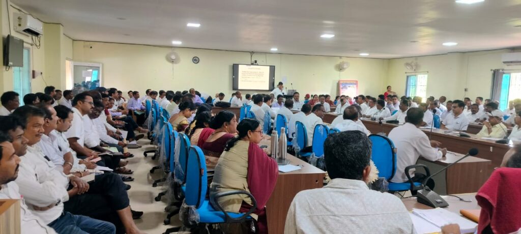 ନବରଙ୍ଗପୁର ତା ୨୫.୧୦.୨୦୨୫: ଆଜି ଜିଲ୍ଲା ଶିକ୍ଷା ଅଧିକାରୀ ନବରଙ୍ଗପୁର ଛତ୍ରପତି ସାହୁଙ୍କ ଅଧ୍ୟକ୍ଷତାରେ ସମସ୍ତ ଉଚ୍ଚ ବିଦ୍ୟାଳୟର ପ୍ରଧାନ ଶିକ୍ଷକ ଓ ଶିକ୍ଷୟତ୍ରୀ ମାନଙ୍କୁ ନେଇ ଏକ ସମ୍ମିଳନୀ ଜିଲ୍ଲା ଶିକ୍ଷା ପ୍ରଶିକ୍ଷଣ ପ୍ରତିଷ୍ଠାନ ନବରଙ୍ଗପୁର ଠାରେ ଅନୁଷ୍ଠିତ ହୋଇଯାଇଛି । ଏହି ସମ୍ମିଳନୀରେ ଜିଲ୍ଲା ମଙ୍ଗଳ ଅଧିକାରୀ, ଉପ ଜିଲ୍ଲା ଶିକ୍ଷା ଅଧିକାରୀ, ଜିଲ୍ଲା ବିଜ୍ଞାନ ପର୍ଯ୍ୟବେକ୍ଷକ, ଜିଲ୍ଲା ଛାତ୍ରପୃତି ସଂଯୋଜକ, ପ୍ରୋଗ୍ରାମ ମ୍ୟାନେଜର, ପିରାମଲ୍ ଫାଉଣ୍ଡେସନ, ସମସ୍ତ ବିଦ୍ୟାଳୟର ପ୍ରଧାନଶିକ୍ଷକ, ଶିକ୍ଷୟତ୍ରୀ ଯୋଗ ଦେଇଥିଲେ । ଉକ୍ତ ବୈଠକରେ ଜିଲ୍ଲା ରେ ସୁପର -୧୦୦ ଆରମ୍ଭ କରିବା ପାଇଁ ହୋଇଥିବା ସ୍କ୍ରିନି ର ଫଳାଫଳ ଉପରେ ସମୀକ୍ଷା କରାଯାଇଥିଲା । କିପରି ଭାବେ ଜିଲ୍ଲାରେ ଛାତ୍ର ଛାତ୍ରୀ ମାନଙ୍କର ପରୀକ୍ଷାଫଳ ମାର୍କରେ ବୃଦ୍ଧି ହେବ ତାହା ଉପରେ କାର୍ଯ୍ୟକାରୀ ଯୋଜନା ତିଆରି କରାଯାଇଥିଲା ।