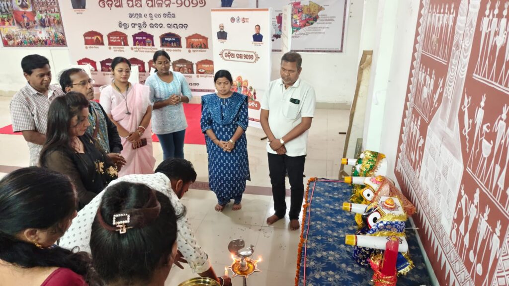 ରାୟଗଡା-୧୦/୦୪-ଓଡ଼ିଆ ପକ୍ଷ ପାଳନ ଅବସରରେ “ଲୋକକଳା ପାଇଁ ଦିନଟିଏ” ପାଳନ ଭିତ୍ତିରେ ଜିଲ୍ଲା ସ୍ଥରୀୟ ଏକ କାର୍ଯ୍ୟକ୍ରମ ସ୍ଥାନୀୟ ସଂସ୍କୃତି ଭବନ କାର୍ଯ୍ୟାଳୟରେ ଅନୁଷ୍ଠିତ ହୋଇଯାଇଛି l ରାୟଗଡ଼ା ସହରାଞ୍ଚଳର କଳା ସଂସ୍କୃତି ସଙ୍ଘର ଉପସଭାପତି ଓ ସାଂସ୍କୃତିକ ଅନୁଷ୍ଠାନ ମାନଙ୍କର ମୁଖ୍ୟ ଓ ସହ କଳାକାରମlନେ ଏହି କାର୍ଯ୍ୟକ୍ରମ ରେ ଯୋଗଦେଇଥିଲେ l ଏହି ଉତ୍ସବ ଜିଲ୍ଲା ସଂସ୍କୃତି ଅଧିକାରୀ ସୁଶ୍ରୀ ସୁସ୍ମିତା ବାଉରୀଙ୍କ ଅଧ୍ୟକ୍ଷତlରେ ଅନୁଷ୍ଠିତ ହୋଇଥିଲା କାର୍ଯ୍ୟକ୍ରମରେ ଜିଲ୍ଲା ସୂଚନା ଓ ଲୋକ ସଂପର୍କ ଅଧିକାରୀ ବସନ୍ତ କୁମାର ପ୍ରଧାନ,ମୁଖ୍ୟ ଅତିଥି,ନଗର କଳା ସଂସ୍କୃତି ସଂଘର ଉପସଭାପତି ଯେ ସୁକାନ୍ତ ସମ୍ମାନିତ ଅତିଥି ଭାବରେ ଯୋଗଦାନ କରିବା ସହିତ ବରିଷ୍ଠ କଳାକାର ମାନଙ୍କୁ ସମ୍ବର୍ଦ୍ଧିତ କରି କଳାକାର ମାନଙ୍କୁ ଉତ୍ସାହିତ କରିଥିଲେ l