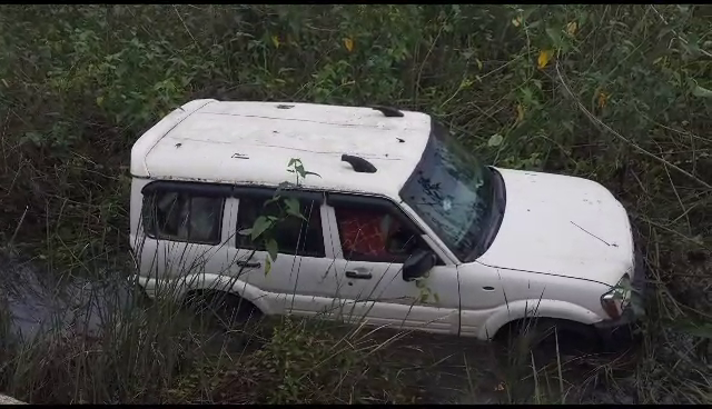 ରାସ୍ତା ତଳକୁ ଖସିଲା ଚୋରା ଦେଶୀମଦ ବୋଝେଇ ସ୍କର୍ପିଓ ଗାଡି