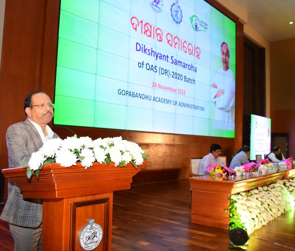 ୨୦୨୦ବ୍ୟାଚ୍ ଓଡିଶା ପ୍ରଶାସନିକ ସେବା ଶିକ୍ଷାନବିଶଙ୍କ ଦୀକ୍ଷାନ୍ତ ସମାରୋହ ଆଜି ଲୋକସେବା ଭବନ ସ୍ଥିତ କନଭେନସନ ସେଣ୍ଟର ଠାରେ ସମାରୋହରେ ଅନୁଷ୍ଠିତ ହୋଇଯାଇଛି ।ଗୋପବନ୍ଧୁ ପ୍ରଶାସନିକ ଏକାଡେମୀତରଫରୁ ଆୟୋଜିତ ଏହି କାର୍ୟ୍ୟକ୍ରମରେ ଏକାଡେମୀରେ ପ୍ରଶିକ୍ଷଣ ନେଇଥିବା ଏହି ବ୍ୟାଚ୍ ର ୧୨୭ ଜଣ ପ୍ରଶାସନିକ ଅଧିକାରୀ ୨୪ ସପ୍ତାହ ଧରି ପ୍ରଶିକ୍ଷଣ ନେବା ପରେ ଶେଷରେ ଆଜି ଏହି ଦୀକ୍ଷାନ୍ତ ସମାରୋହ ଅନୁଷ୍ଠିତ ହୋଇଥିଲା । ଏହି ସମାରୋହରେ ମୁଖ୍ୟ ଅତିଥି ଭାବେ ମୁଖ୍ୟ ଶାସନ ସଚିବ ଶ୍ରୀ ପ୍ରଦୀପ କୁମାର ଜେନା ଯୋଗଦେଇ ଦାୟିତ୍ୱ ନିର୍ବାହ ଓ କର୍ତ୍ତବ୍ୟ ସମ୍ପାଦନ ବେଳେ ସର୍ବାଧିକ ସତର୍କତା ଅବଲମ୍ବନ ଓ ସାଧୁତା ବଜାୟ ରଖିବାକୁ ପ୍ରଶାସନିକ ଅଧିକାରୀମାନଙ୍କୁ ସେ ପରାମର୍ଶ ଦେଇଛନ୍ତି ।