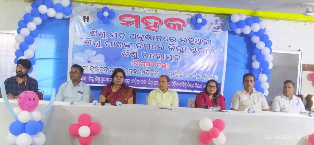 ଶିଶୁ ମାନେ ନିଜ ମହକରେ ମହକିତ ହୁଅନ୍ତୁ : ରାୟଗଡ଼ : ୨୦/୧୦/୨୩ ଆଜି ସ୍ଥାନୀୟ କୃଷ୍ଣ ଚନ୍ଦ୍ର ନଗର ଭବନ ଠାରେ ଶିଶୁ ଯତ୍ନ ଅନୁଷ୍ଠାନ ମାନଙ୍କରେ ରହୁଥିବା ଶିଶୁ ମାନଙ୍କୁ ନେଇ ରାୟଗଡ଼ ଜିଲ୍ଲା ସ୍ତରୀୟ ଶିଶୁ ମହୋତ୍ସବ ମହକ ୨୦୨୩ ଅନୁଷ୍ଠିତ ହୋଇଥିଲା ଜିଲ୍ଲା ଶିଶୁ ସୁରକ୍ଷା ୟୁନିଟ ଦ୍ଵାରା ଆୟୋଜିତ ଏହି ମହୋତ୍ସବର ଉଦ୍ଘାଟନୀ ଉତ୍ସବରେ ରାୟଗଡ଼ ଅତିରିକ୍ତ ଜିଲ୍ଲାପାଳ ଭାସ୍କର ରାଇତ ମୁଖ୍ୟ ଅତିଥି ଭାବେ ଯୋଗ ଦେଇ ଶିଶୁ ମାନଙ୍କୁ ଇଉତ୍ସାହିତ କରିଥିଲେ ।