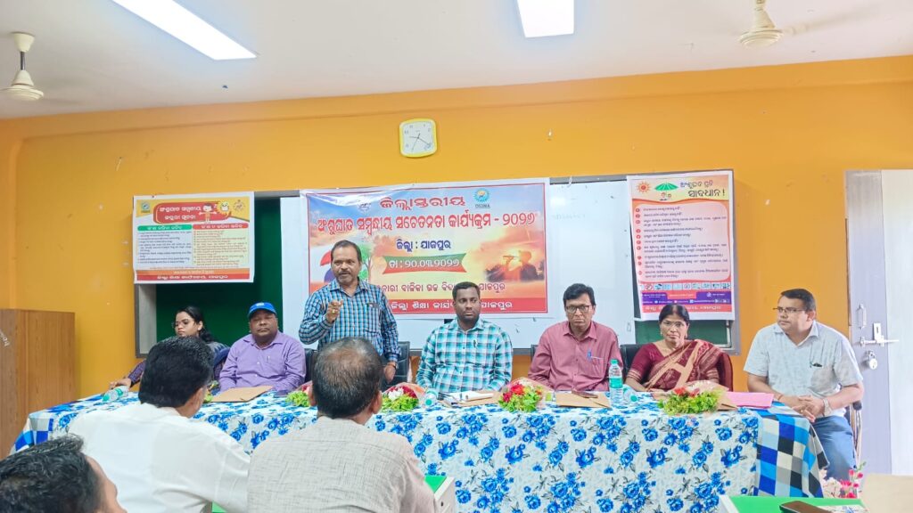 ଯାଜପୁର,୨୦/୦୩/୨୦୨୬ ଯାଜପୁର ଟାଉନ ଅନ୍ତର୍ଗତ ସରକାରୀ ବାଳିକା ଉଚ୍ଚ ବିଦ୍ୟାଳୟ, ଯାଜପୁର ପରିସରରେ ଜିଲ୍ଲା ଶିକ୍ଷା କାର୍ଯ୍ୟାଳୟ, ଯାଜପୁର ତରଫରୁ ଗ୍ରୀଷ୍ମ ପ୍ରଭାବକୁ ଦୃଷ୍ଟିରେ ରଖି ଜିଲ୍ଲା ସ୍ତରୀୟ ଅଂଶୁଘାତ ସମ୍ବନ୍ଧୀୟ ସଚେତନତା କାର୍ଯ୍ୟକ୍ରମ -୨୦୨୬ ଅନୁଷ୍ଠିତ ହୋଇଯାଇଛି l ଏଥିରେ ଜିଲ୍ଲାର ବିଭିନ୍ନ ବ୍ଲକ ତଥା ଯାଜପୁର ମୁନିସିପାଲିଟି ଅନ୍ତର୍ଗତ କଲେଜ ଓ ସ୍କୁଲମାନଙ୍କର ଅଧକ୍ଷ, ପ୍ରଧାନଶିକ୍ଷକ ଓ ଶିକ୍ଷକଶିକ୍ଷୟତ୍ରୀମାନେ ଯୋଗଦାନ କରିଥିଲେ l ଜିଲ୍ଲା ବିଜ୍ଞାନ ନିରୀକ୍ଷକ କୁମାରସେନ ସେନାପତିଙ୍କ ସଭାପତିତ୍ୱରେ ଉକ୍ତ ସଚେତନତା ସଭାରେ ମୁଖ୍ୟ ଅତିଥି ରୂପେ ଅତିରିକ୍ତ ଜିଲ୍ଲା ଶିକ୍ଷାଧିକାରୀ ଆଲୋକ କୁମାର ବନ୍ଧ, ମୁଖ୍ୟବକ୍ତା ରୂପେ ଜିଲ୍ଲା ପ୍ରକଳ୍ପ ଅଧିକାରୀ, ଓଡିଶା ରାଜ୍ୟ ବିପର୍ଯ୍ୟୟ ପରିଚାଳନା, ଶ୍ରୀନିବାସ ପଣ୍ଡା, ସମ୍ମାନିତ ଅତିଥି ଭାବେ ବି ଇ ଓ, ଦଶରଥପୁର, ବି ଇ ଓ, ବରୀ, ଏ ବି ଇ ଓ, ଯାଜପୁର ଓ ଏ ବି ଇ ଓ, ବିଂଝାରପୁର ଅଂଶଗ୍ରହଣ କରିଥିଲେ l