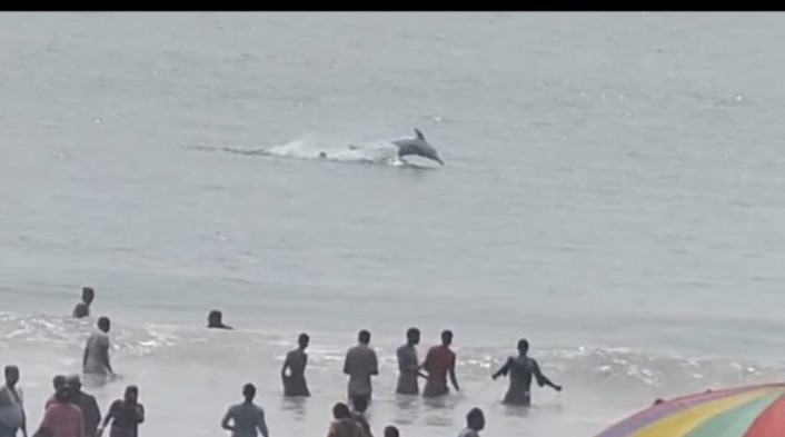 ପୁରୀ ସମୁଦ୍ରରେ ପୁଣି ଡଲଫିନର ମତୁଆଲ ଖେଳ। ସମୁଦ୍ରର ଅଥଳ ଜଳରାଶିରେ ଡେଇଁବାର ଦୃଶ୍ୟ ଆଜି ଦେଖାଦେଇଛି। ଯାହା ବେଶ୍ ମନୋରମ ଥିଲା। ପ୍ରତିଦିନ ଚିଲିକାରେ ରହୁଥିବା ଏରଓ୍ବାଡି ଡଲଫିନ ଓ ବଟଲ ନୋଜ ଡଲଫିନ ଚନ୍ଦ୍ରଭାଗା ସମୁଦ୍ର ପର୍ଯ୍ୟନ୍ତ ଯାଇଥାନ୍ତି। ଆଜି ଏଭଳି ବିରଳ ଦୃଶ୍ୟ ପୁରୀ ବେଳାଭୂମିରେ ଚିଲିକାର ଭ୍ରମ ସୃଷ୍ଟି କରିଥିଲା |