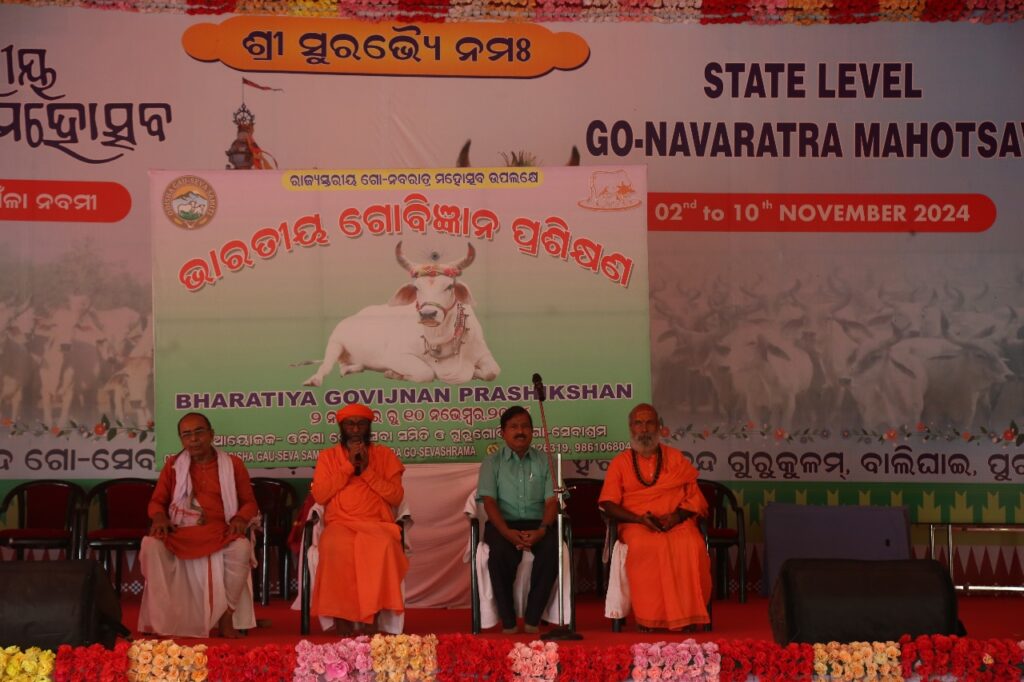 ଆଜିର ଭାରତୀୟ ଗୋବିଜ୍ଞାନ ପ୍ରଶିକ୍ଷଣ ଶିବିରରେ ଓଡ଼ିଶା ସରକାରଙ୍କର ପ୍ରାଣୀ ପାଳନ ଓ ପ୍ରାଣୀ ଚିକିତ୍ସା ବିଭାଗର ଅବସରପ୍ରାପ୍ତ ଯୁଗ୍ମ ନିର୍ଦ୍ଦେଶକ ଓ ସୁନାମଧନ୍ୟ ଗୋ ବିଶେଷଜ୍ଞ ଡକ୍ଟର ବଳରାମ ସାହୁ ଯୋଗଦେଇ ଭାରତୀୟ ପାରମ୍ପରିକ ଗୋଚିକିତ୍ସା ବିଷୟରେ ବିସ୍ତୃତ ଆଲୋଚନା କରିବା ସହିତ ଉପସ୍ଥିତ ଗୋଭକ୍ତମାନଙ୍କର ବିଭିନ୍ନ ପ୍ରଶ୍ନର ଉତ୍ତର ଦେଇଥିଲେ। ଓଡ଼ିଶା ଗୋସେବା ସମିତିର ସଂପାଦକ ଶ୍ରୀ ହରପ୍ରସାଦ ଦାସ ଭଟ୍ଟମିଶ୍ର ପ୍ରଶିକ୍ଷଣ ଶିବିରର ଅଧ୍ୟକ୍ଷତା କରିଥିଲେ ଓ ଶ୍ରୀଯୁକ୍ତ ଡକ୍ଟର ବଳରାମ ସାହୁଙ୍କୁ ସମ୍ମାନିତ କରିଥିଲେ।ଶ୍ରୀମଦ୍ ଭାଗବତ କଥାର ଚତୁର୍ଥ ଦିବସରେ ପୂଜ୍ୟ ବାବାଜୀ ଦୀନବନ୍ଧୁ ଦାସ ମହାରାଜ ଶାସ୍ତ୍ରରେ ଲିଖିତ ମନୁଷ୍ୟମାନଙ୍କର ବିନାଶ ସମୟ ଉପସ୍ଥିତିର ଲକ୍ଷଣ ବିଷୟରେ ବୁଝାଇବାକୁ କହିଲେ, ଯେତେବେଳେ ଘରେ ଘରେ ଶାସ୍ତ୍ର ଅଧ୍ୟୟନ ଏବଂ ଦେବ ପୂଜନ ବନ୍ଦ ହୁଏ ଓ ସମାଜରେ ଗୋମାତାଙ୍କୁ କଷ୍ଟ ଦିଆଯାଏ, ସେତେବେଳେ ଜାଣିବ ଯେ ମନୁଷ୍ୟର ବିନାଶ କାଳ ପାଖେଇ ଆସିଲା। ଓଡ଼ିଶାର ବିଭିନ୍ନ ଜିଲ୍ଲାରୁ ୨୦୦୦ ରୁ ଉର୍ଦ୍ଧ୍ବ ଗୋଭକ୍ତ ଓ ଗୋସେବକ ଆଜିର ଗୋ କାର୍ଯ୍ୟକ୍ରମରେ ଯୋଗ ଦେଇଥିଲେ।
