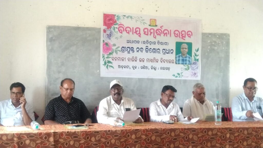 ଗଣିଆ – ଗଣିଆରେ ଥିବା ବନମାଳୀ ବାରିକି ଉଚ୍ଚ ମାଧ୍ୟମିକ ବିଦ୍ୟାଳୟର ଜଣେ ଅଧ୍ୟାପକଙ୍କର ଅବସରକାଳୀନ ସମ୍ବର୍ଦ୍ଧନା ସଭା ଅନୁଷ୍ଠିତ ହୋଇଯାଇଛି । ଅଧ୍ୟକ୍ଷ ସଞ୍ଜୟ କୁମାର ପଣ୍ଡାଙ୍କ ଅଧ୍ୟକ୍ଷତାରେ ଅନୁଷ୍ଠିତ ଉକ୍ତ ଉତ୍ସବରେ ମୁଖ୍ୟଅତିଥି ଭାବେ ବାସୁଦେବ ଫାଉଣ୍ଡେସନ ପ୍ରତିଷ୍ଠାତା ତଥା ପୂର୍ବତନ ବ୍ଳକ ଅଧ୍ୟକ୍ଷ ଶେଷଦେବ ସ୍ବାଇଁ ଯୋଗ ଦେଇଥିବା ବେଳେ ସମ୍ମାନିତ ଅତିଥି ଭାବେ ଶିକ୍ଷାବିତ କୁଳମଣି ବାରିକ, ପ୍ରତିଷ୍ଠାତା କାଶିନାଥ ବାରିକି, ଅବସରପ୍ରାପ୍ତ ପ୍ରଧାନଶିକ୍ଷକ ପ୍ରଶନ୍ନ କୁମାର ସେଣ, ପୂର୍ବତନ ସମିତି ସଭ୍ୟ ଚନ୍ଦ୍ରଶେଖର ସାହୁ ପ୍ରମୁଖ ମଞ୍ଚାସୀନ ଥିଲେ । ଇତିହାସ ବିଭାଗର ଅଧ୍ୟାପକ ନବକିଶୋର ପ୍ରଧାନ ଅବସର ଗ୍ରହଣ କରିଥିବା ଜଣାପଡିଛି । ବିଦ୍ୟାଳୟ ତରଫରୁ ବିଦାୟୀ ଅଧ୍ୟାପକଙ୍କୁ ଉପଢ଼ୌକନ ଏବଂ ଉପହାର ଦେଇ ସମ୍ବର୍ଦ୍ଧିତ କରାଯାଇଥିଲା । ଛାତ୍ର ଛାତ୍ରୀ ମାନଙ୍କ ତରଫରୁ ବିଦାୟୀ ସଙ୍ଗୀତ ଗାନ କରାଯାଇଥିଲା ଯାହା ଅତ୍ୟନ୍ତ ମନୋମୁଗ୍ଧକର ତଥା ହୃଦୟସ୍ପର୍ଶୀ ଥିଲା । ସେ ୧୯୯୨ ମସିହା ଠାରୁ ଏହି ବିଦ୍ୟାଳୟରେ କାର୍ଯ୍ୟ କରି ଆସୁଥିବା ବେଳେ ଦୀର୍ଘ ୩୩ ବର୍ଷ ଧରି ଏହି ଅନୁଷ୍ଠାନର ସୁଖ ଦୁଃଖରେ ସାମିଲ ହୋଇଥିବାରୁ ତାଙ୍କୁ ଅତିଥି ମାନଙ୍କ ତରଫରୁ କୃତଜ୍ଞତା ଜ୍ଞାପନ କରାଯାଇଥିଲା । ଜଣେ କର୍ତ୍ତବ୍ୟନିଷ୍ଠ,ସଚ୍ଚୋଟ, ପରୋପକାରୀ ତଥା ଦରଦୀ ମଣିଷ ଭାବେ ବେଶ୍ ଜଣାଶୁଣା ଥିଲେ ଶ୍ରୀ ପ୍ରଧାନ । ଅନୁଷ୍ଠାନ ଆରମ୍ଭରୁ ନିଜର ପରିଶ୍ରମ, ପରାକାଷ୍ଠା ଦେଖାଇ ଅନୁଷ୍ଠାନକୁ ଆଗକୁ ନେବାରେ ତାଙ୍କର ଭୂମିକା ଅତ୍ୟନ୍ତ ଗୁରୁତ୍ୱପୂର୍ଣ୍ଣ ବୋଲି ଅତିଥି ମାନେ ମତବ୍ୟକ୍ତ କରିଥିଲେ । ବହୁତ କମ୍ ସମୟ ମଧ୍ୟରେ ଉକ୍ତ ଅନୁଷ୍ଠାନଟି ତାର ସଫଳତା ବଜାୟ ରଖିଥିବାରୁ ମୁଖ୍ୟ ଅତିଥି ଶ୍ରୀ ସ୍ବାଇଁ ଅନୁଷ୍ଠାନର ଅଧ୍ୟକ୍ଷ ତଥା ସମସ୍ତ ଅଧ୍ୟାପକ ମାନଙ୍କୁ ଶୁଭେଚ୍ଛା ପ୍ରଦାନ କରିଥିଲେ । ଅଧ୍ୟାପକଙ୍କ ଉଦ୍ୟଶ୍ୟରେ ଛାତ୍ର ଛାତ୍ରୀ ମାନେ କୋହଭରା କଣ୍ଠରେ ନିଜର ବକ୍ତବ୍ୟ ପ୍ରଦାନ କରିଥିଲେ । ମହାବିଦ୍ୟାଳୟରେ ଗତ ଯୁକ୍ତ ଦୁଇ ପରୀକ୍ଷାରେ ୫ ଶହରୁ ଅଧିକ ନମ୍ବର ରଖିଥିବା ଛାତ୍ରୀ ମାନଙ୍କୁ ପୁରସ୍କୃତ ଏବଂ ସମ୍ବର୍ଦ୍ଧିତ କରାଯାଇଥିଲା । ଆଜିର କାର୍ଯ୍ୟକ୍ରମ ପରିଚାଳନା କରିଥିଲେ ଇଂରାଜୀ ଅଧ୍ୟାପକ ଦୁର୍ଯ୍ୟୋଧନ ପରିଡ଼ା । ଉଚ୍ଚ ମାଧ୍ୟମିକ ବିଦ୍ୟାଳୟର ସମସ୍ତ ଅଧ୍ୟାପକ ଅଧ୍ୟାପିକାମାନେ ଏହି କାର୍ଯ୍ୟକ୍ରମରେ ସଂପୂର୍ଣ୍ଣ ସହଯୋଗ କରିଥିଲେ ।