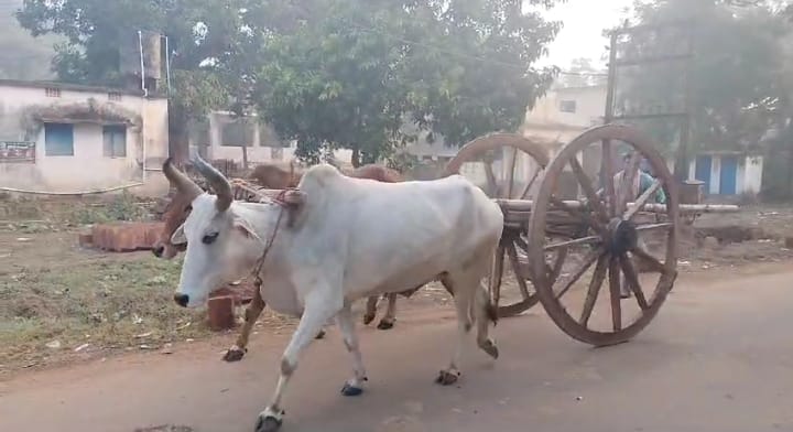 ଶଗଡ଼ ଛାଡ଼ି ଯନ୍ତ୍ର ପଛରେ ଚାଷୀ