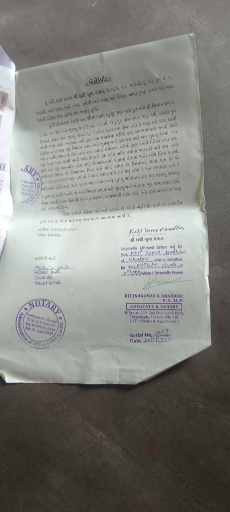 ହିଞ୍ଜିଳିକାଟୁ ବ୍ଳକ୍ ତଥା ବେଲଗାଁ ଥାନା ଅନ୍ତର୍ଗତ ପୁଟିଆପଦର ଗ୍ରାମର ଏକ ଜୈନିକ ବ୍ୟକ୍ତି ଜଣକ ନିଜ ପୁତ୍ରକୁ ତେଯ୍ୟ ପୁତ୍ର ଭାବେ ଘୋଷଣା ସହ ଶପଥ ପାଠ କରିଛନ୍ତି । ସୂଚନାଯୋଗ୍ୟ ପୁଟିଆପଦର ଗ୍ରାମର ସ୍ୱର୍ଗତ ସୁମା ପ୍ରଧାନ ପୁତ୍ର କାଶୀ ପ୍ରଧାନ,ବୟସ ୬୬ବର୍ଷ, ତାଙ୍କ ରାଜ୍ୟ ଓଡ଼ିଶା ଆଧାର କାର୍ଡ ନମ୍ବର 7030 6148 6255,ସେ ଏକ କୋର୍ଟ ଅଫିଡେଫିଡ଼ ମଧ୍ୟରେ ସପଥ ପାଠ ଘୋଷଣା କରିଛନ୍ତି । ସେ ସର୍ଭେ 3/2/2 ଖଡୋଲି ସୁରଙ୍ଗୀ ରାସ୍ତା, ଖଡୋଲି ସିଲଭାସା ଖାଡୋଲି ଦାଦ୍ରା ଏବଂ ନଗର ହାଭେଲି ସିଲାଭାସା ଦାଦ୍ରା ଏବଂ ନଗର ହାଭେଲି 39623 ଠିକଣାରେ ମୋ ସହିତ ମୋହ ପୁଅ ବିମାନ ପ୍ରଧାନ ବୟସ ୧୮ ବର୍ଷ ରହୁଥିଲା । ସେଠାରେ ମୋର ପୁଅ ବିହାର ରାଜ୍ୟର ଗୋଟିଏ ପରିବାର ତାଙ୍କ ରହିବା ସ୍ଥାନ ନିକଟରେ ରହୁଥିଲେ ।ସେମାନଙ୍କର ଝିଅ ଖୁସୁବୁ ଚନ୍ଦ୍ରବଂଶୀ ନାମକ ଝିଅ ଯାହାର ବୟସ ପ୍ରାୟ ୧୫ ବର୍ଷ ହେବ ସେହି ଝିଅ ସହିତ ମୋ ପୁଅର ପ୍ରେମ ସମ୍ପର୍କ ସ୍ଥାପନ ହୋଇଥିଲା ।