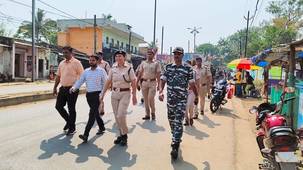 ଶାନ୍ତି ପୂର୍ଣ୍ଣ ଓ ଭୟ ମୁକ୍ତ ନିର୍ବାଚନ ପାଇଁ ପୋଲିସ ଓ CRPF ର ମିଳିତ ଫ୍ଲାଗ ମାର୍ଚ୍ଚ