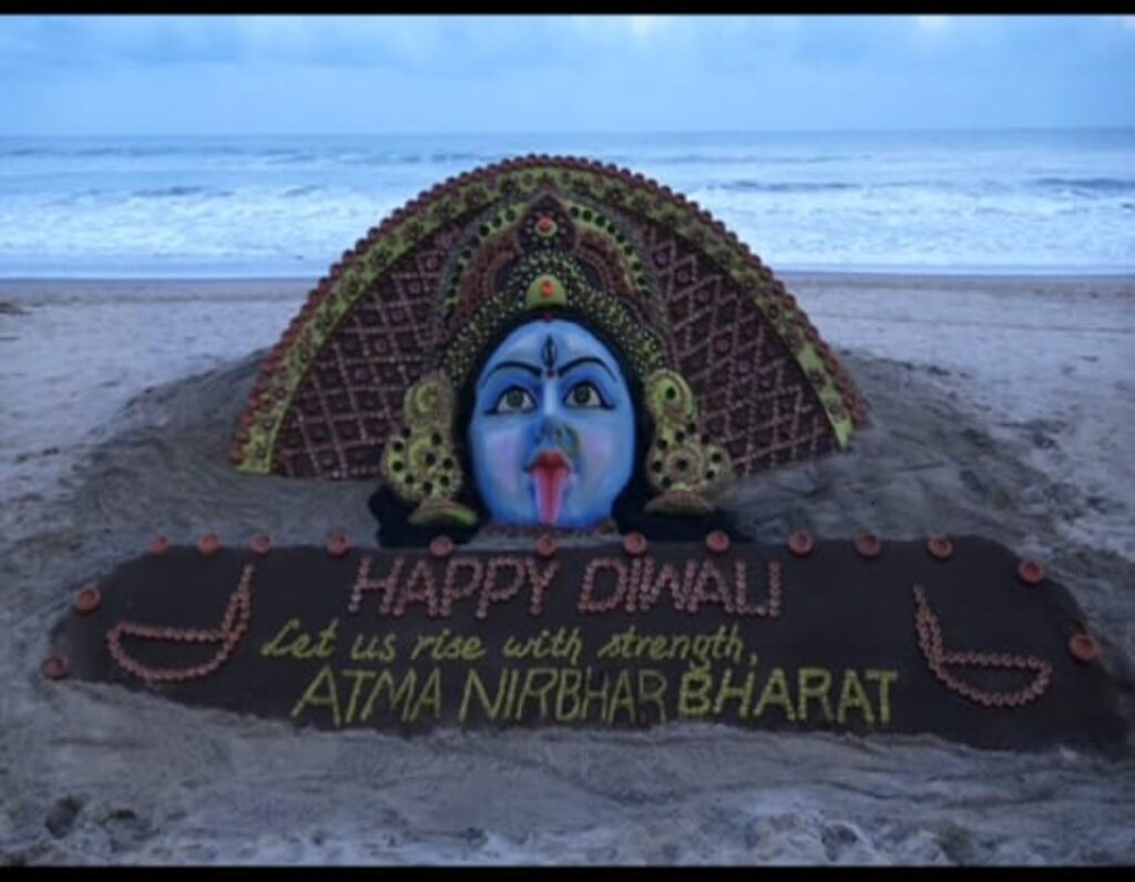ପବିତ୍ର ଦୀପାବଳିକୁ ନେଇ ଗାଁ ରୁ ସହର ଯାଏ ସବୁଠି ଉତ୍ସବ ମୁଖର ବାତାବରଣ। ଆଲୋକର ପର୍ବ ଦୀପାବଳି ପାଳନ ପାଇଁ ସବୁଠି ହୋଇଛି ପ୍ରସ୍ତୁତି। ଏହି ଅବସରରେ ବାଲୁକାକଳାରେ ଦୀପାବଳିର ଶୁଭେଛା ଦେଇଛନ୍ତି ଆନ୍ତର୍ଜାତୀୟ ବାଲୁକା ଚିତ୍ରଶିଳ୍ପୀ ପଦ୍ମଶ୍ରୀ ସୁଦର୍ଶନ ପଟ୍ଟନାୟକ। ପୂରୀ ବେଳାଭୁମିରେ ସୁଦର୍ଶନ ଏନେଇ ଏକ ସୁନ୍ଦର ବାଲୁକା ଚିତ୍ରକଳା କରି ଦୀପାବଳିର ଅଭିନନ୍ଦନ ଜଣାଇଛନ୍ତି। ସୁଦର୍ଶନ ତାଙ୍କ ବାଲୁକାକଳାରେ ପ୍ରାୟ ୧ ହଜାର ମାଟି ଦିପ ସ୍ଥାନିତ କରିବା ସହ ମା କାଳୀଙ୍କ ଏକ ସୁନ୍ଦର ପ୍ରତିକୃତି ନିର୍ମାଣ କରିଛନ୍ତି। ଏହାସହ ପ୍ରଧାନମନ୍ତ୍ରୀ ନରେନ୍ଦ୍ର ମୋଦିଙ୍କ ଆତ୍ମ ନିର୍ଭର ବାର୍ତ୍ତା ମଧ୍ୟ ବାଲୁକାକଳାରେ ପ୍ରଦାନ କରିଛନ୍ତି ସୁଦର୍ଶନ। ଯେତେବେଳେ ଆମେ ଲୋକାଲ ପାଇଁ ଭୋକାଲ ହେଉଛୁ, ତା’ ଯୋଗୁଁ ବିଶ୍ୱବାସୀ ମଧ୍ୟ ଆମର ସ୍ଥାନୀୟ ଉତ୍ପାଦ ଗୁଡ଼ିକୁ ଭଲ ପାଇଲେଣି। ଆମର ଅନେକ ସ୍ଥାନୀୟ ଉତ୍ପାଦ ଅନ୍ତର୍ଜାତୀୟସ୍ତରରେ ଖ୍ୟାତିଲାଭ କରିଛି,,ତେଣୁ ତାହକୁ ବଜାୟ ରଖିବା ପାଇଁ ବିଶ୍ଵବାସୀଙ୍କୁ ନିବେଦନ କରିଛନ୍ତି ସୁଦର୍ଶନ ପଟ୍ଟନାୟକ lଲୋକାଲ ଫର ଭୋକାଲକୁ ପାଳନ କରିବା ସହ ଦେଶକୁ ଆହୁରି ସୁଦୃଡ଼ କରିବା ବୋଲି ସୁଦର୍ଶନ କହିଛନ୍ତି। ପ୍ରତିବର୍ଷ ଭଳି ଚଳିତବର୍ଷ ମଧ୍ୟ ପ୍ରଦୂଷଣ ମୁକ୍ତ ପାଇଁ ସମସ୍ତେ ସବୁଜ ବାଣ ସହ ସୁରକ୍ଷିତ ଭାବେ ବାଣ ଫୁଟାଇବାକୁ ସୁଦର୍ଶନ ଅନୁରୋଧ କରିଛନ୍ତି। ସୁଦର୍ଶନଙ୍କ ଦ୍ୱାରା ନିର୍ମିତ ଏହି ଆକର୍ଷଣୀୟ ବାଲୁକାକଳାକୁ ଦେଖିବାକୁ ବେଳାଭୂମିରେ ପର୍ଯ୍ୟଟକଙ୍କ ଭିଡ ପରିଲକ୍ଷିତ ହୋଇଥିବା ବେଳେ ସମୁଦାୟ 6 ଟନ୍ ବାଲି ଉପଯୋଗ ହୋଇଛି।